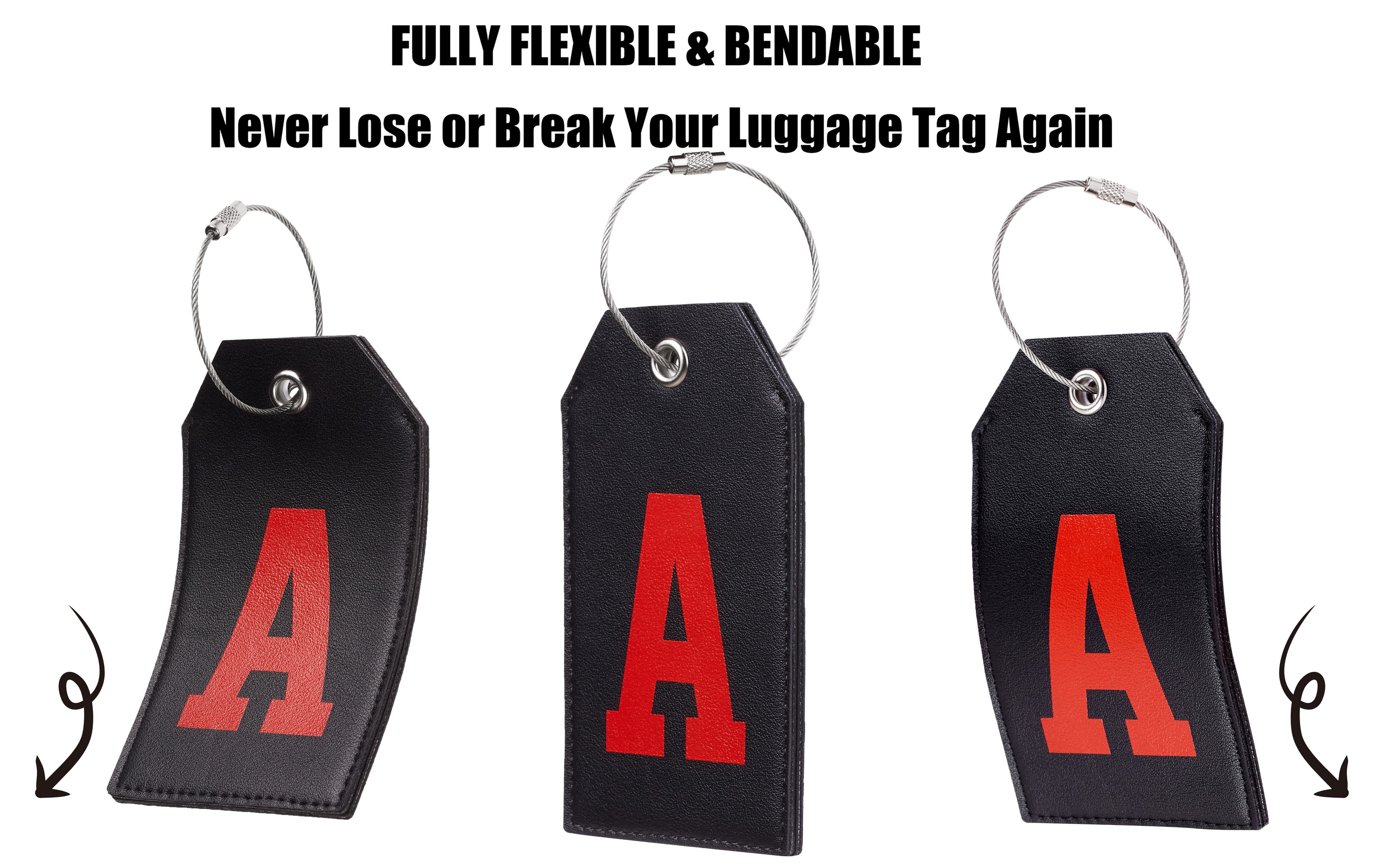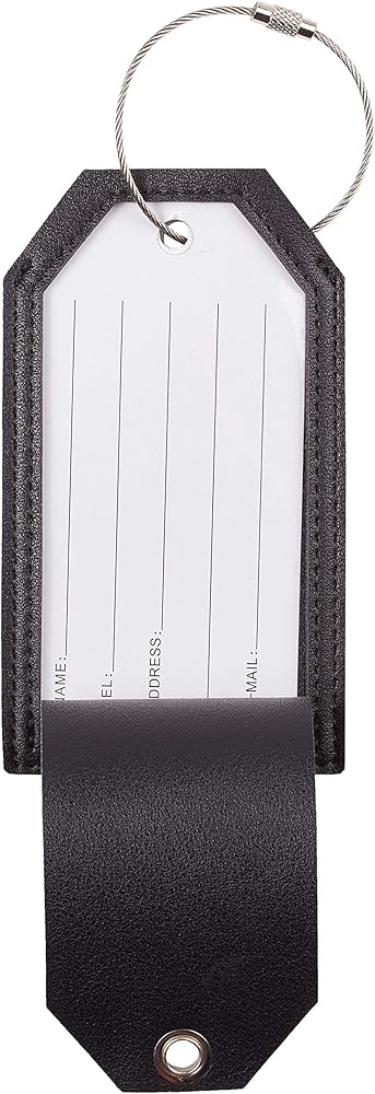 Made of Sturdy Vegan Leather: A good deal to make. We made it with Steel Loops so that your tags won't snap off. Dimension: 4 1/2 X 2 1/2 inches; Privacy Flap: your personal information will be well protected; Bendable: this tag will survive any torture during your trip; Stainless Steel Loop: Strong loop makes it impossible for your luggage to lose the tag;
