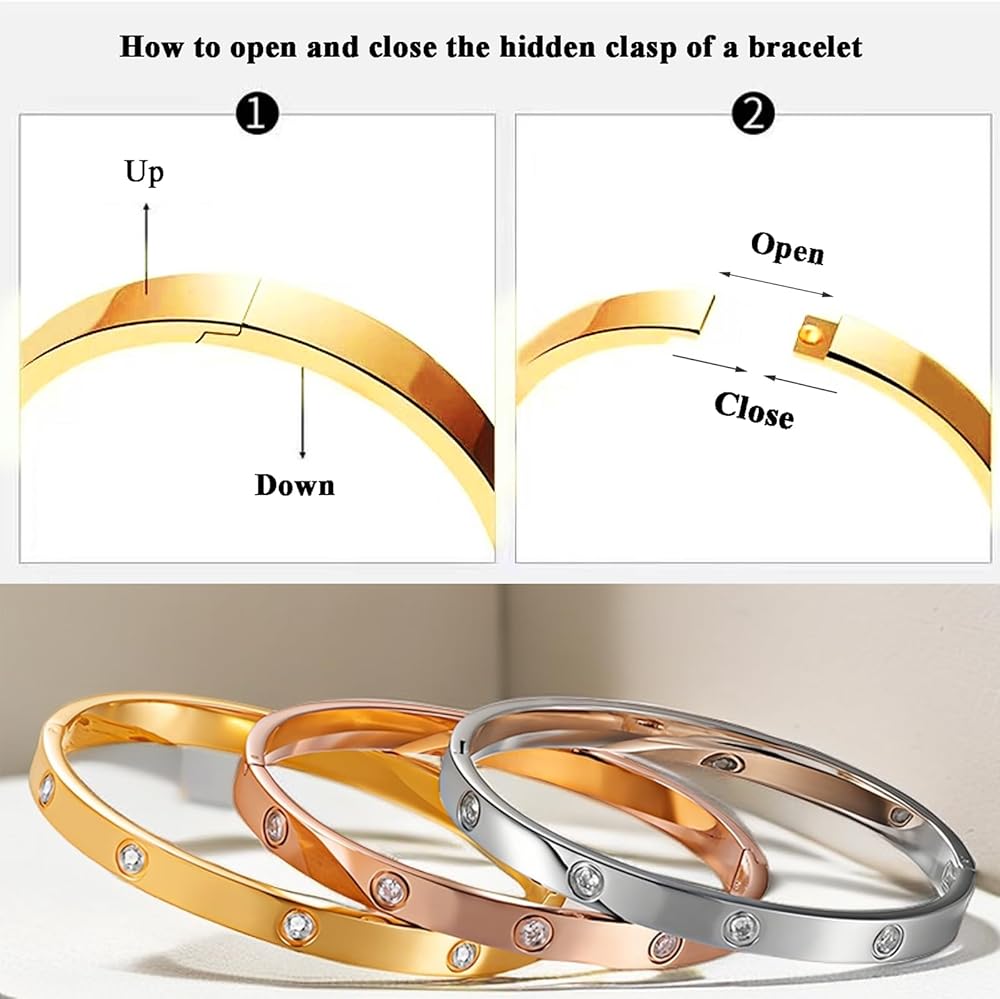 • سهلة الاستخدام: السوار الذهبي ذو المشبك المخفي بسيط وأنيق، مما يجعل من السهل جدًا على البالغين أو المراهقين ارتداؤه أو خلعه. للحصول على فهم أفضل، يرجى مراجعة الفيديو الخاص بنا بعناية.