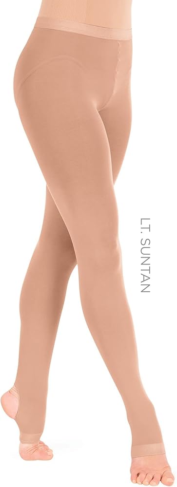 Super soft, seamless, stirrup tight is great for dance, exercise, recital, costuming, and fashion. For ordering, please reference given tight swatches. "Pink" most closely matches Theatricals ballet shoes and is a khaki, flesh colored pink.