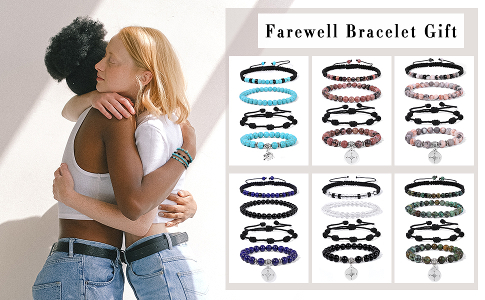 • 【 العبوة 】تتضمن حقيبة هدايا رمادية، و4 قطع من أساور الوداع، وبطاقة رسالة ذات معنى، هدايا وداع رائعة لزملائك في العمل أو أصدقائك أو معلمك أو رئيسك.