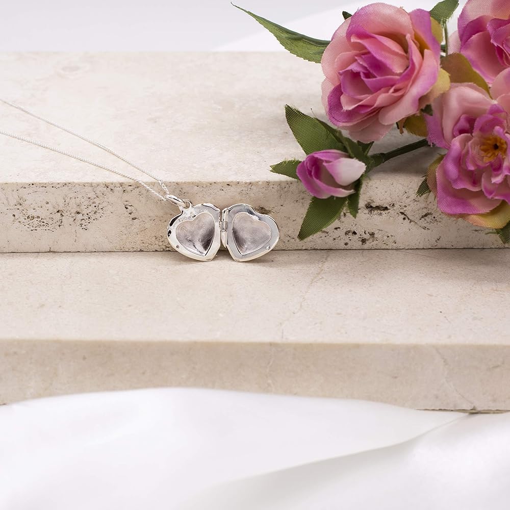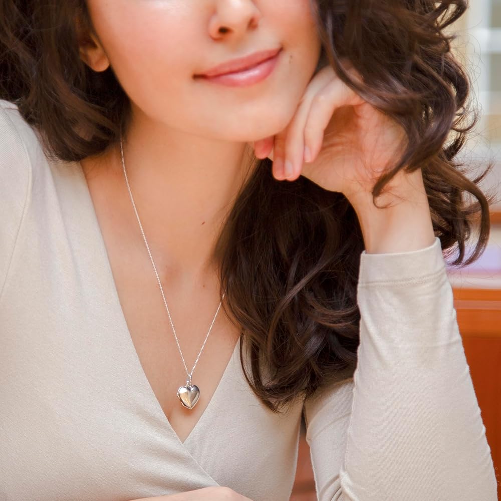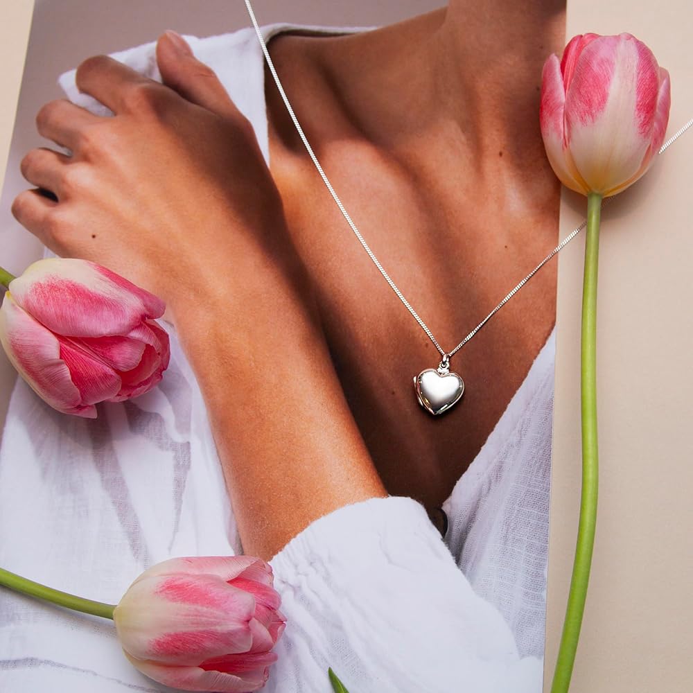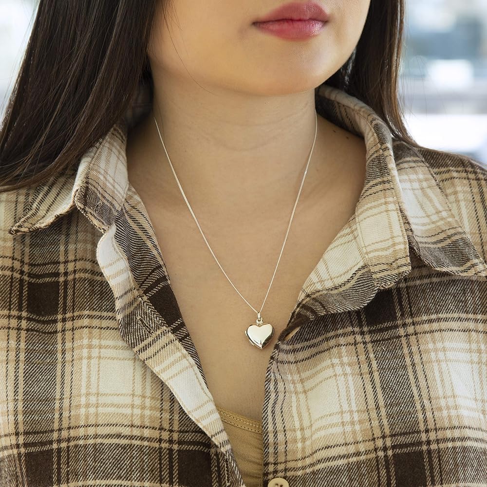 التفاصيل الدقيقة: هذه قلادة من الفضة الإسترلينية على شكل قلب على سلسلة كبح مقاس 46 سم/18 بوصة