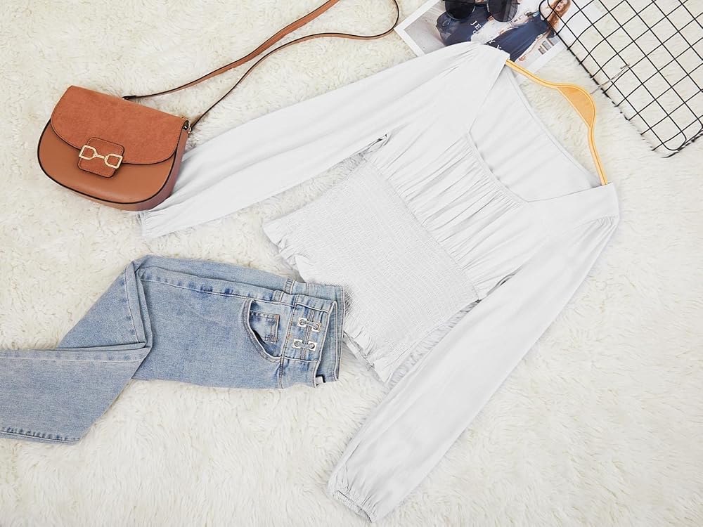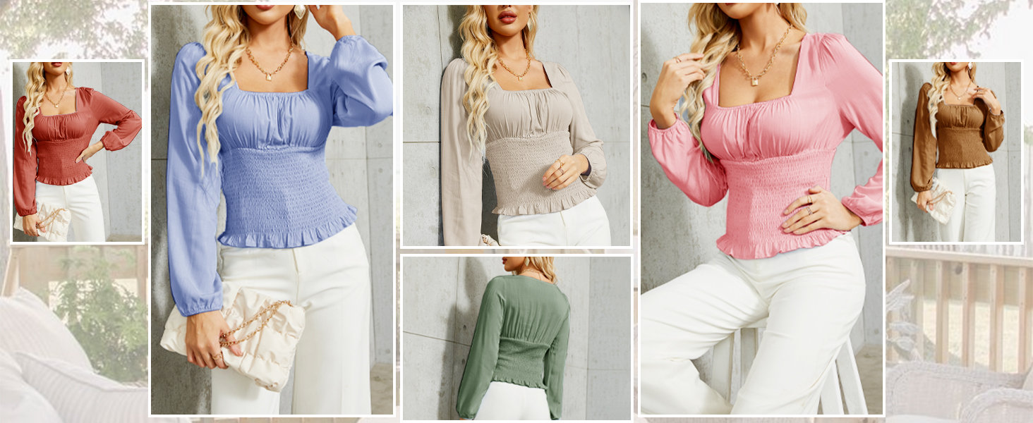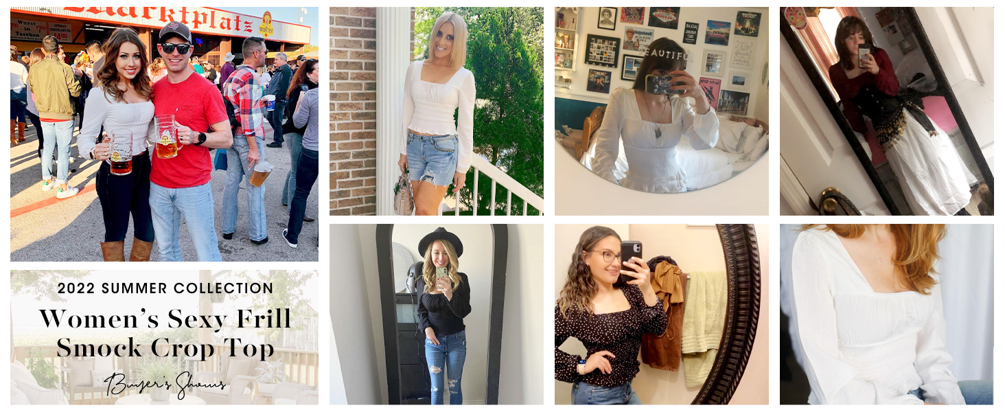 - ♥ رقبة مربعة أنيقة كلاسيكية، وأكمام منتفخة، وقميص قصير، وكشكشة صغيرة. هذه التفاصيل اللطيفة مع مواد صديقة للبشرة ستجعلك تحب هذا القميص القصير.