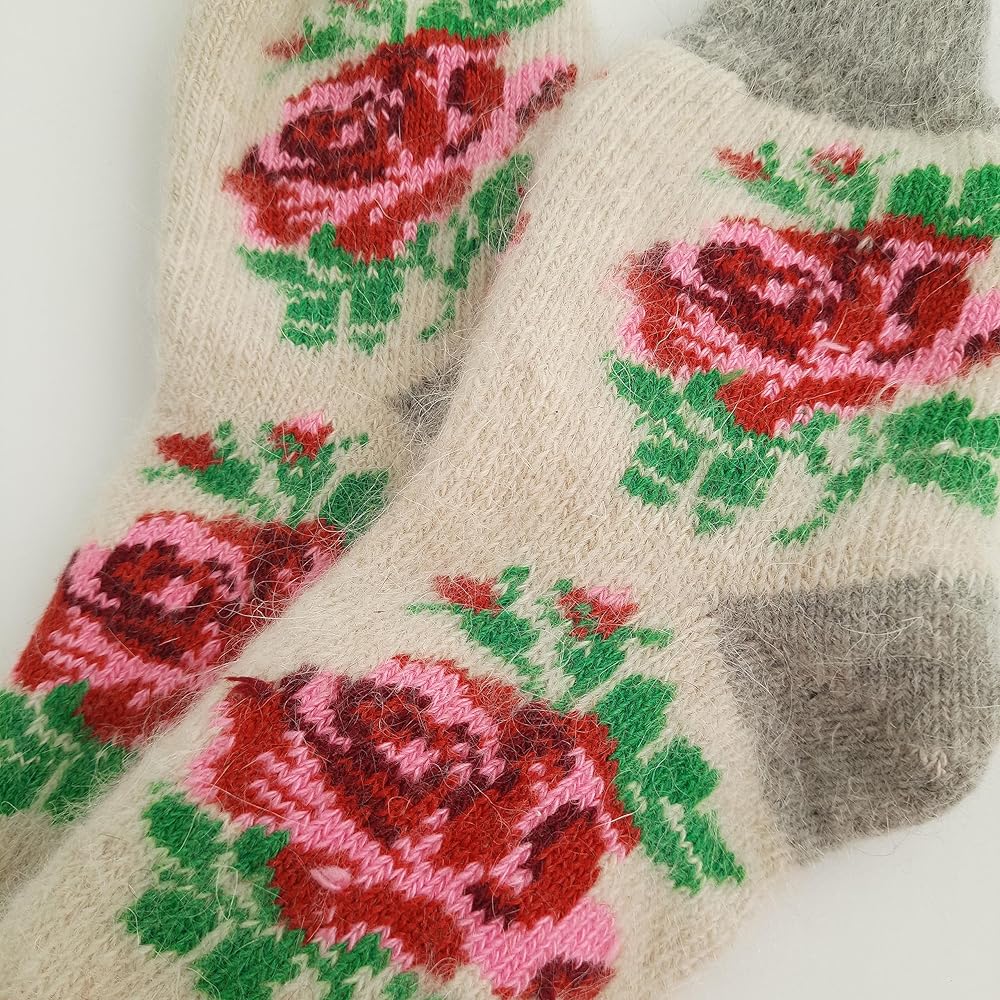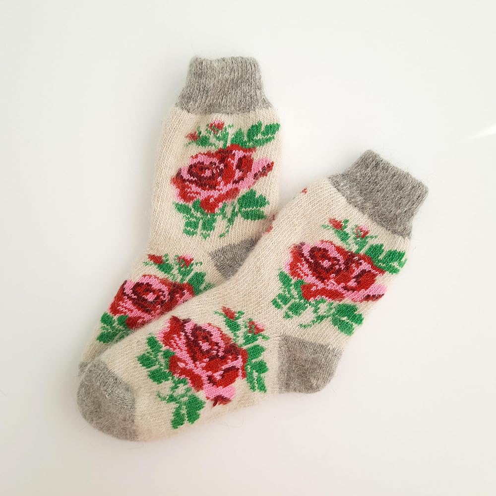 • الجوارب الصوفية المحبوكة مع الورود هي فكرة رائعة لهدية الكريسماس الشتوية للنساء والفتيات.