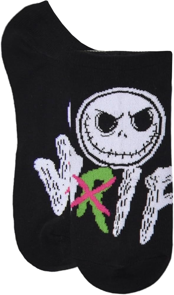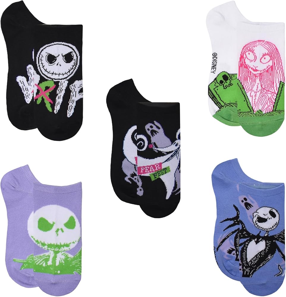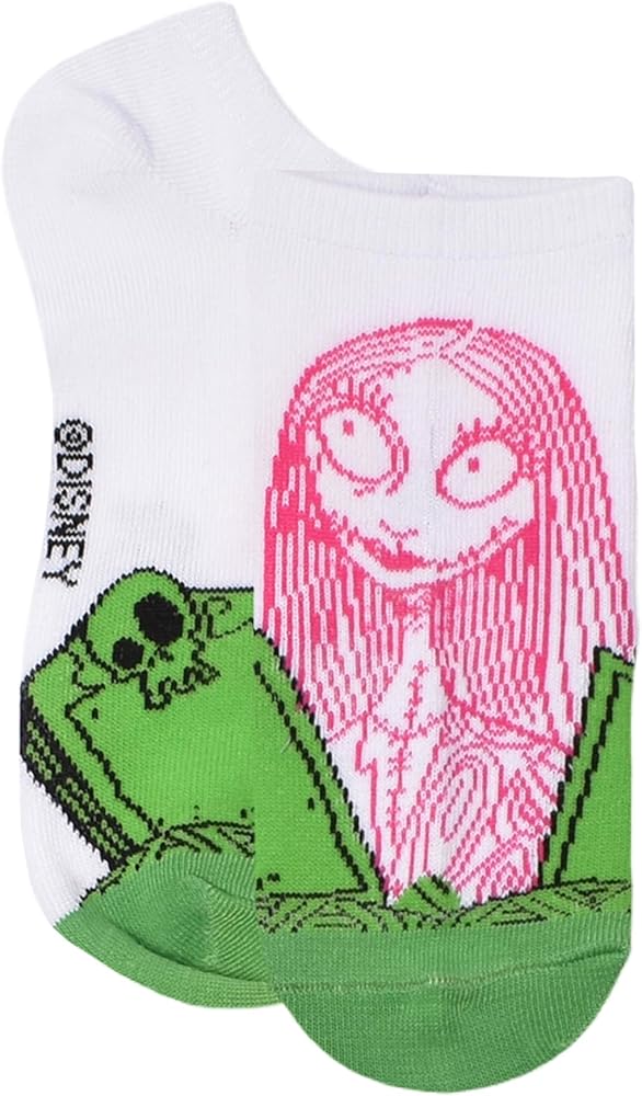 9-Pack includes 9 pairs of assorted women's Nightmare Before Christmas no show socks. These Nightmare Before Christmas socks are made up of 97% Polyester and 3% Spandex material and are lightweight and soft. These socks highlight your favorite Nightmare Before Christmas characters. Come in size 9/11. Machine wash in cold water.