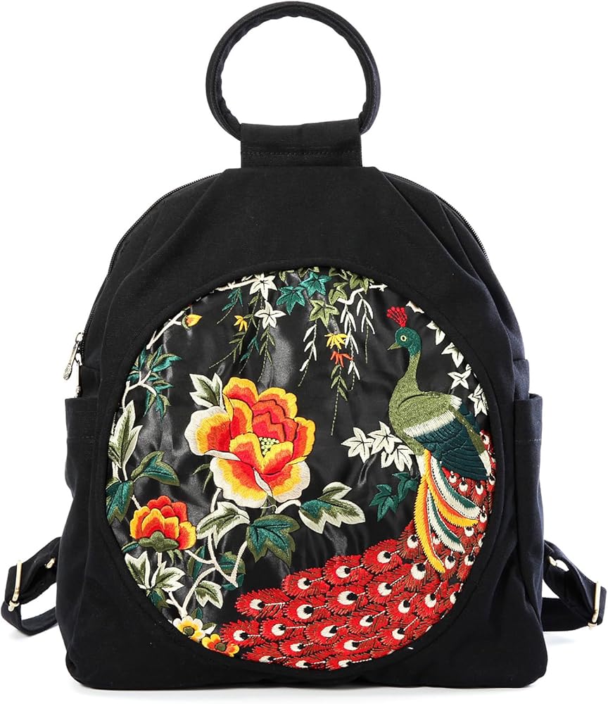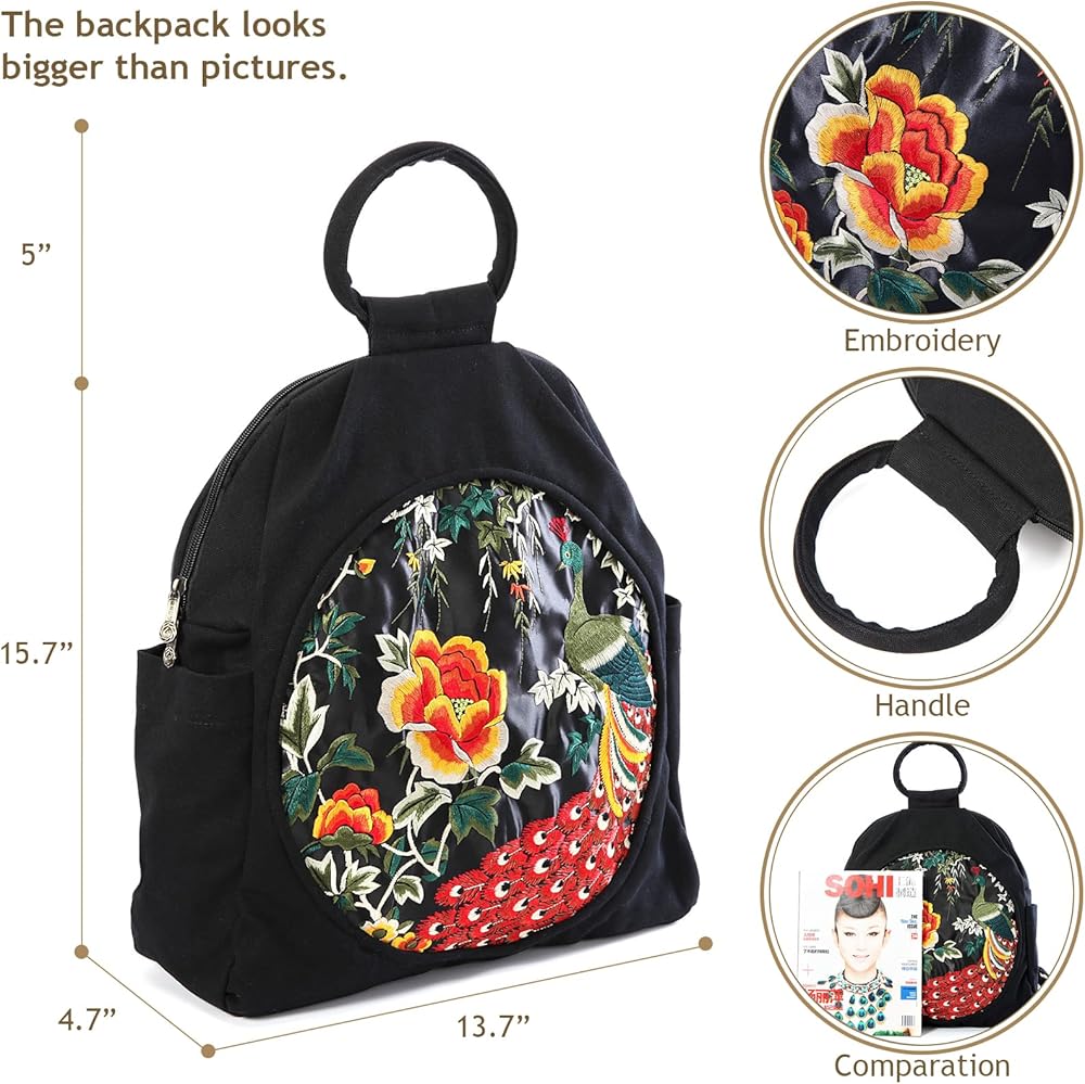 • ❤شنطة ظهر مطرزة بزهور طاووس جميلة جدًا للنساء والفتيات. حقيبة خاصة وستحظى بإعجاب الآخرين. خيار هدية رائع.