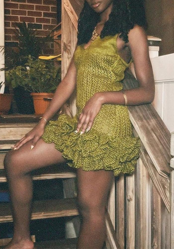 ✨التصميم: فستان سترة نسائي مثير، أشرطة بدون أكمام، برعم زهور، فستان قصير قصير، رقبة على شكل حرف V، مقاس نحيف، لون ثابت، طراز ملائم نحيف، فستان قصير محبوك، فستان قصير بلوفر، تصميم ضيق يظهر منحنيات جسمك الساحرة