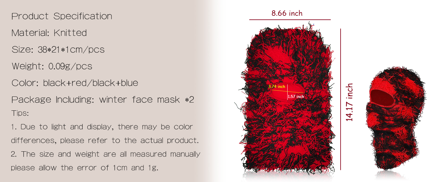 Package Including: winter face mask *2