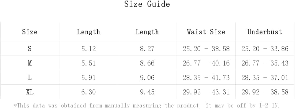 S:Length:5.1IN,Underbust:25.2-33.9IN,Length:8.3IN,Waist Size:25.2-38.6IN