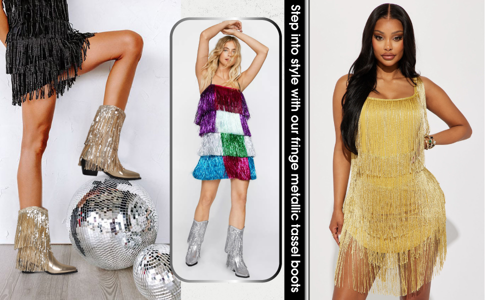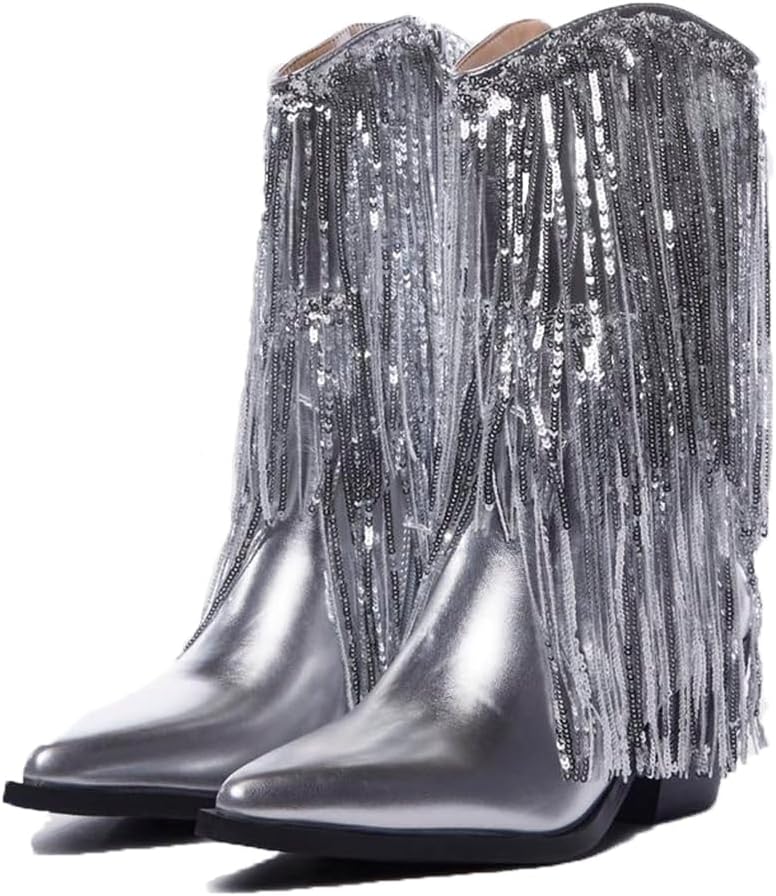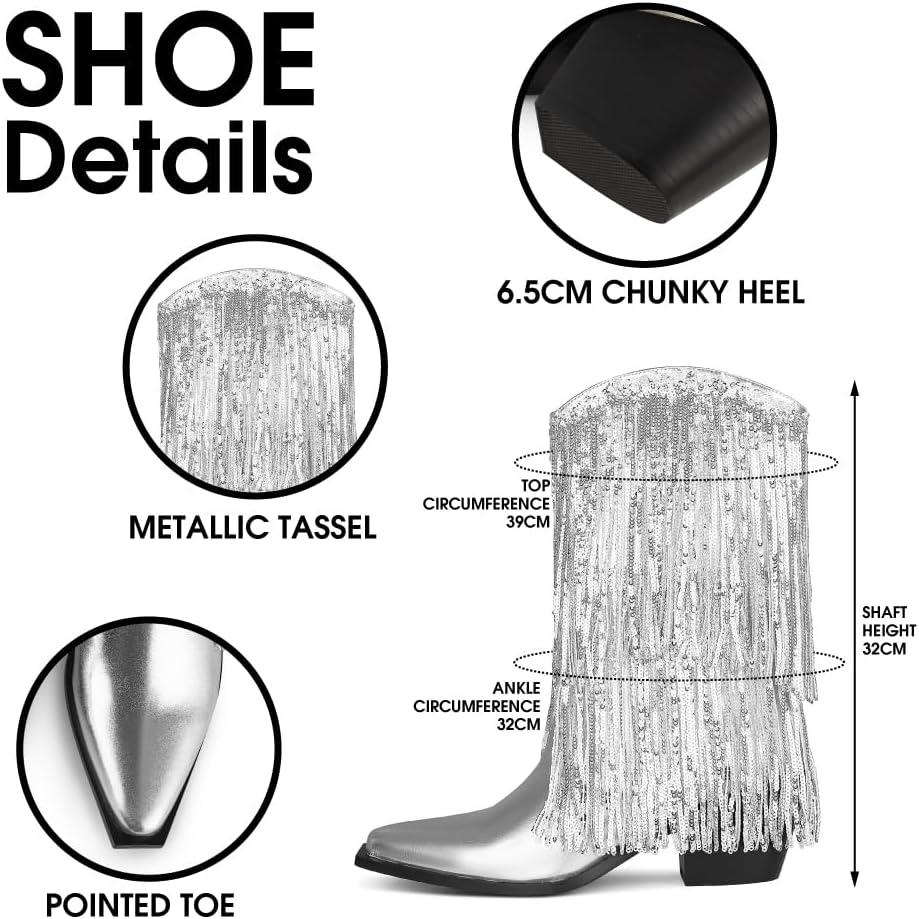 • [أحذية رعاة البقر المذهلة ذات الشرابة] أحذية رعاة البقر اللامعة هذه للسيدات جذابة للغاية ومثيرة للإعجاب. وهذا يجعلك مميزًا في حفلات الرقص، والحفلات المسائية، والمهرجانات الموسيقية، والحفلات الموسيقية، وحفلات الزفاف، وحفلات العزوبية