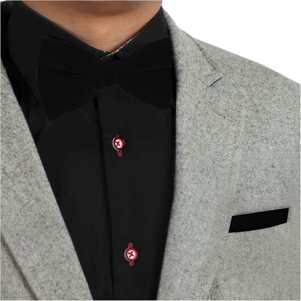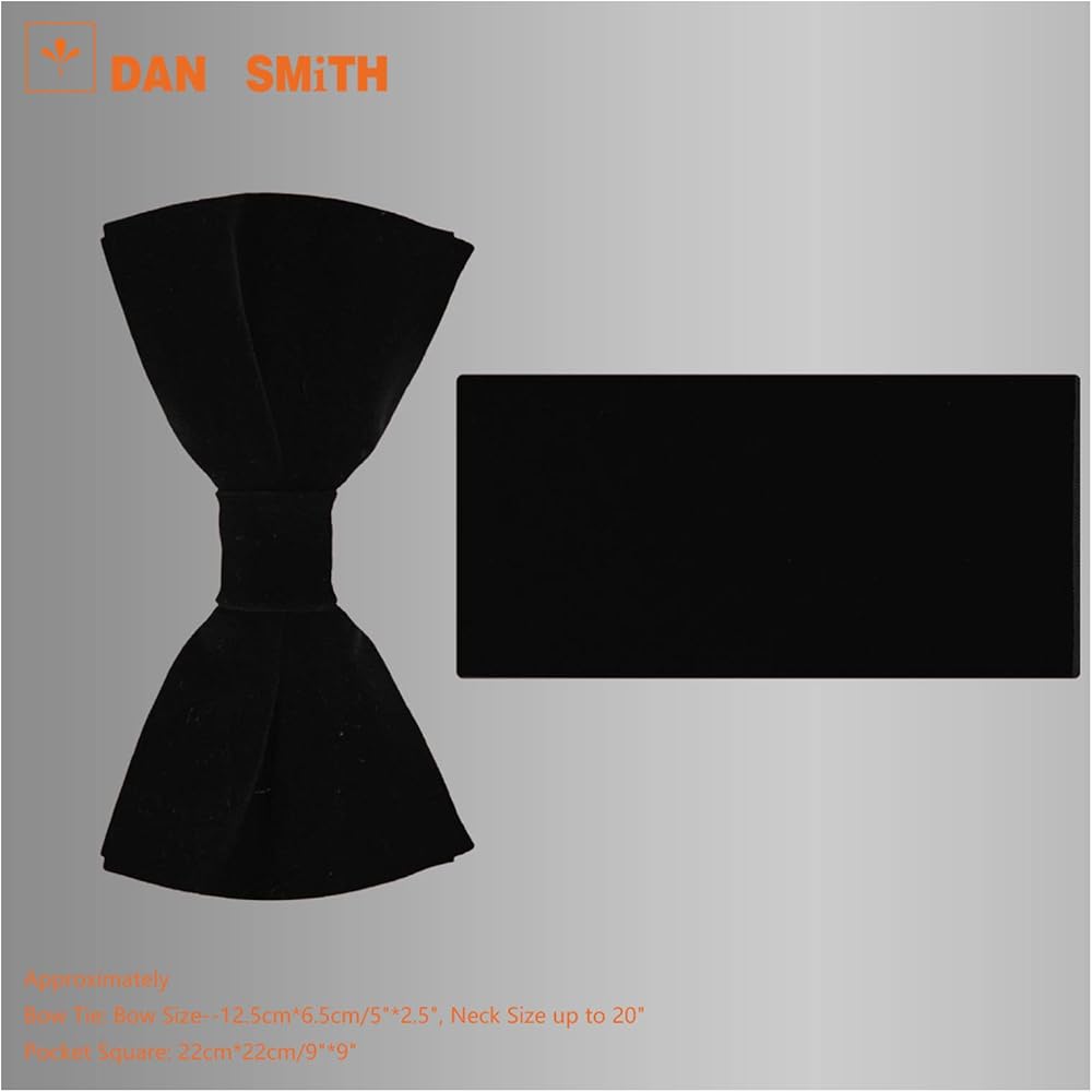 Plain Bowties For Mens Dimensions: Pre-Tied Bowtie: 4.72(L)X2.36(W)X0.71(H) Inch, Pocketsquare: 8.66(L)X8.66(W)X0.08(H) Inch.Dan Smith Suede Bow Ties For Party has a wealth of designs including Solid, Borders, Stripes and Dots. Suitable for suit and shirt, as well as from the impression you want to give around.