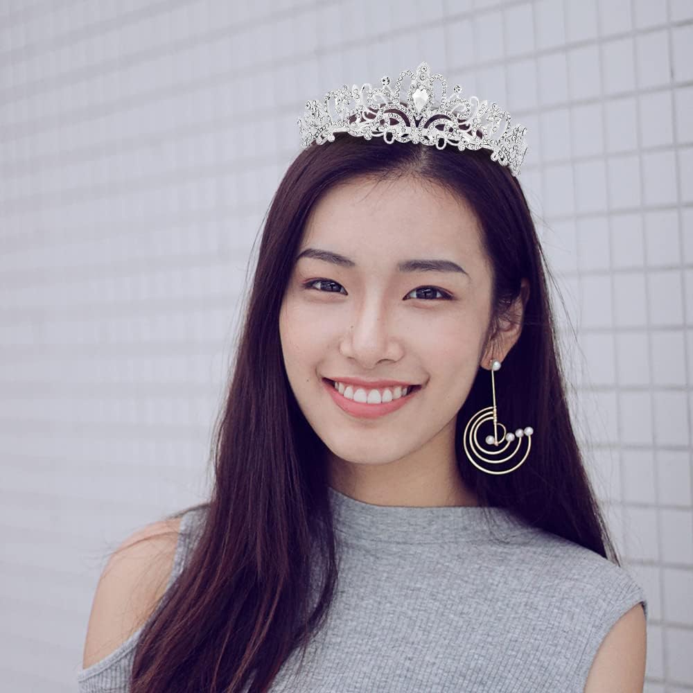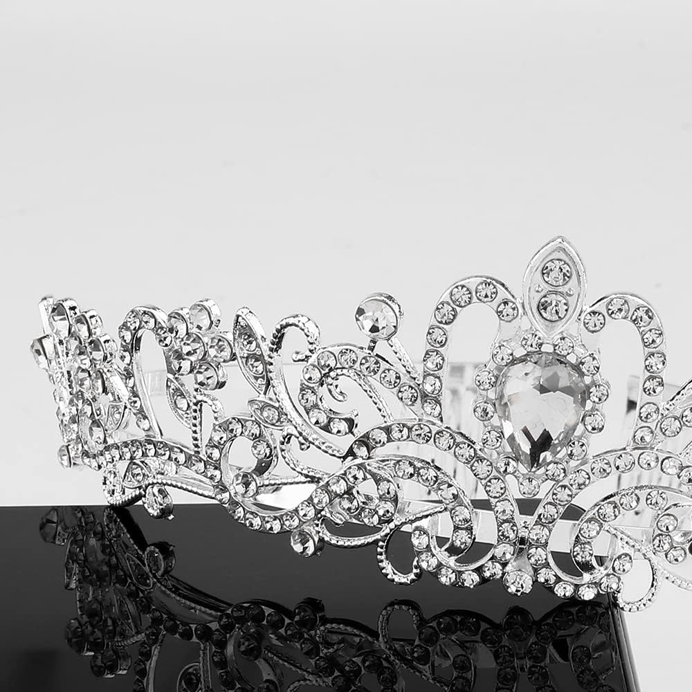 اوبري تاج وتاج للنساء والفتيات للحفلات الراقصة الملكة تاج فضي للنساء الأميرة تاج حجر الراين إكسسوارات العودة للوطن سعيدة