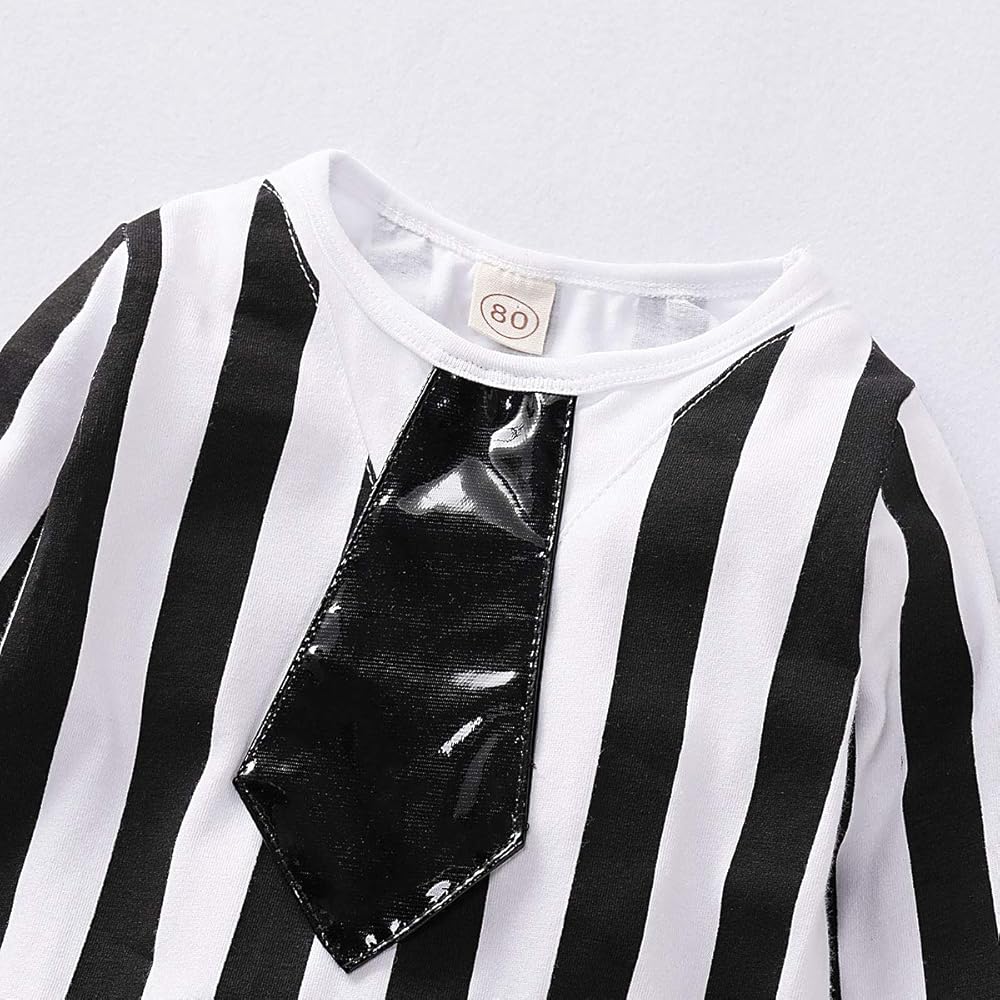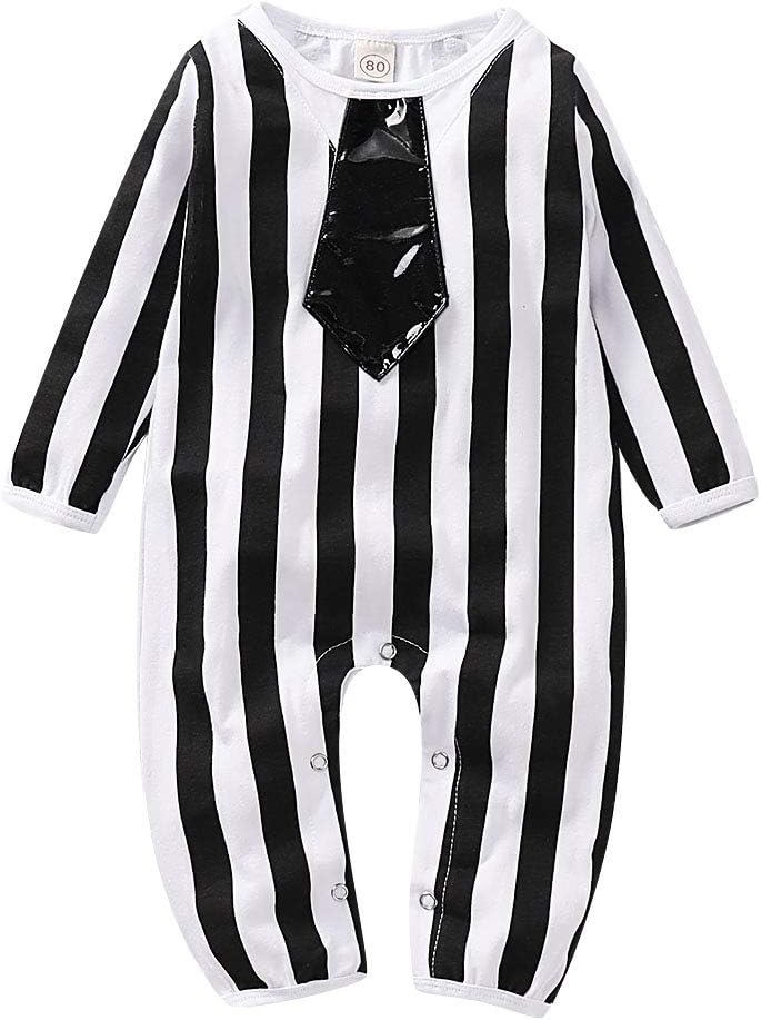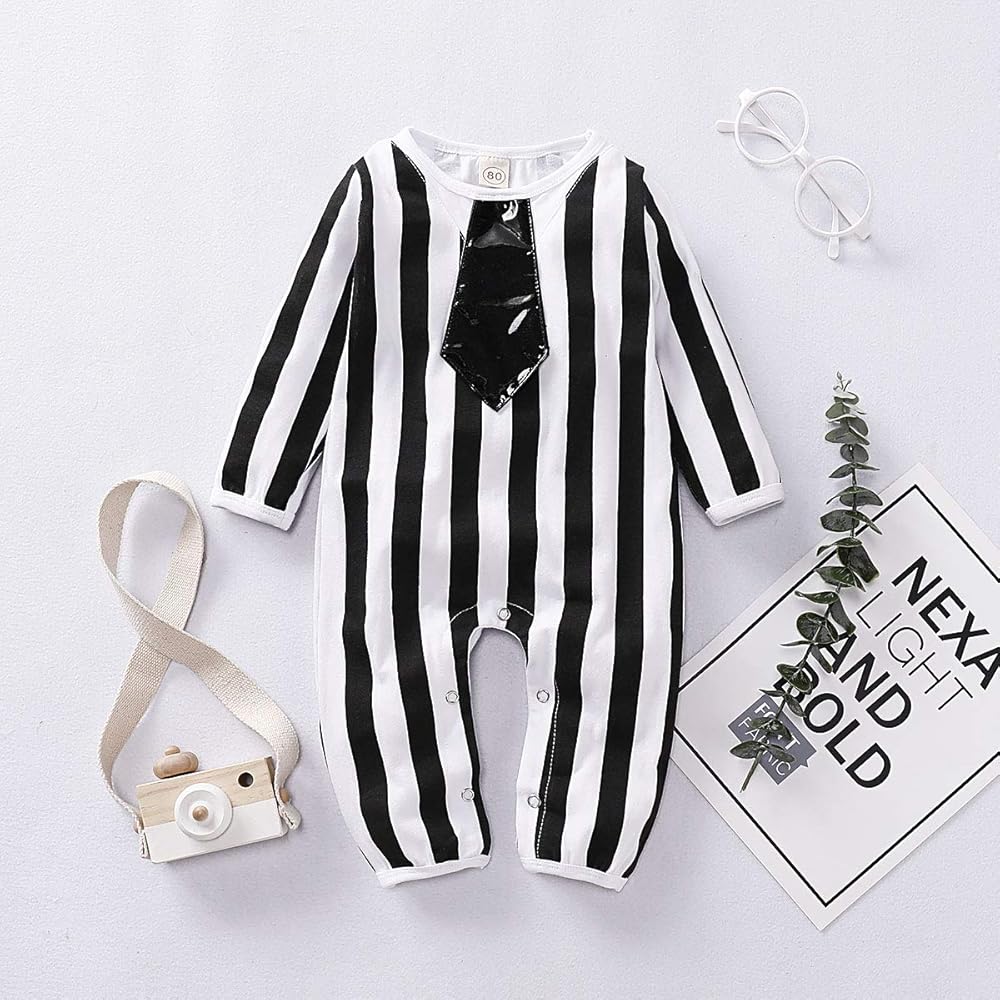 Viworld بيبي بوي ملابس الهالوين للرضع مخططة بأكمام طويلة بذلة رومبير مع ربطة عنق زي الحفلات التنكرية