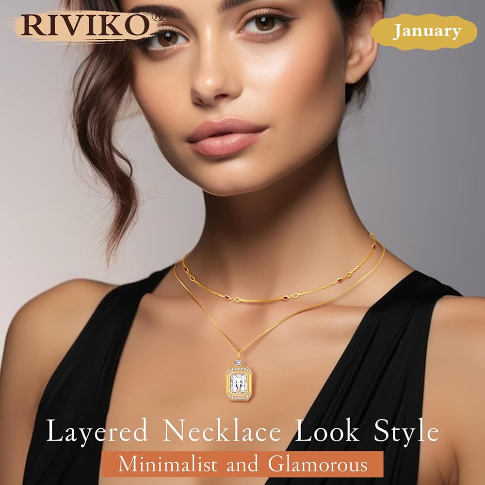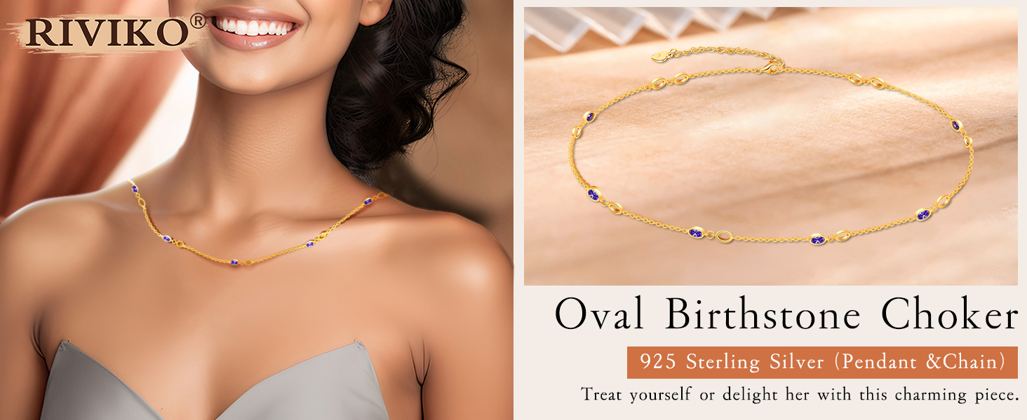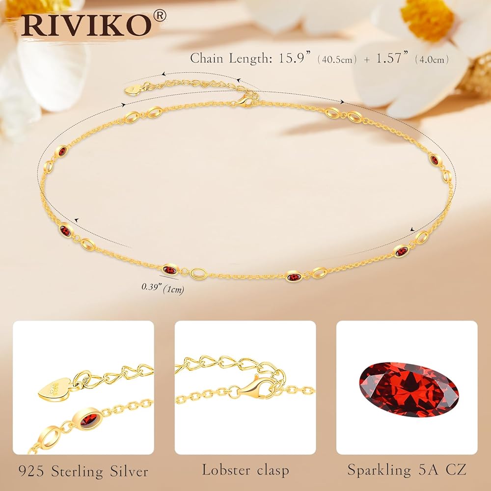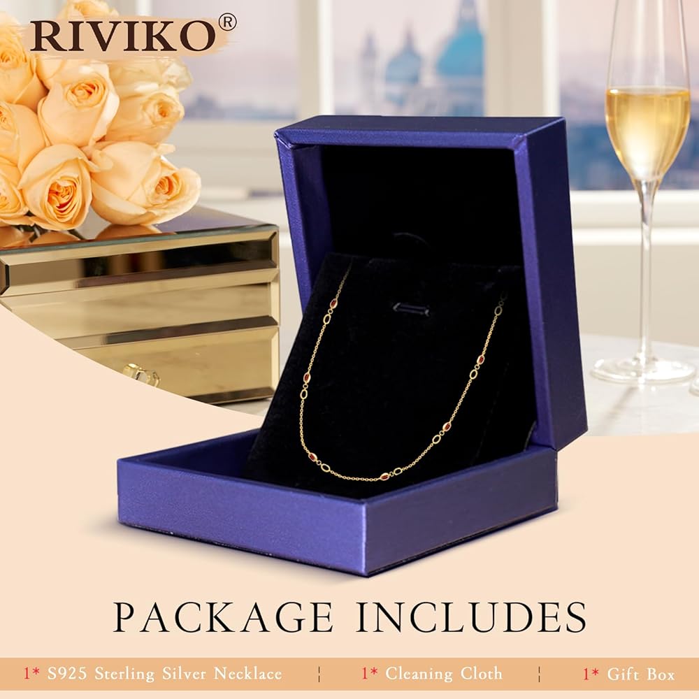 riviko قلادة جوهرة للنساء الفتيات، 925 الفضة الاسترليني مطلية بالذهب قلادة المرأة لذيذ، قابل للتعديل جوهرة الميلاد قلادة الذكرى مجوهرات عيد الحب هدايا عيد ميلاد للفتيات أمي زوجة صديقة سيدة