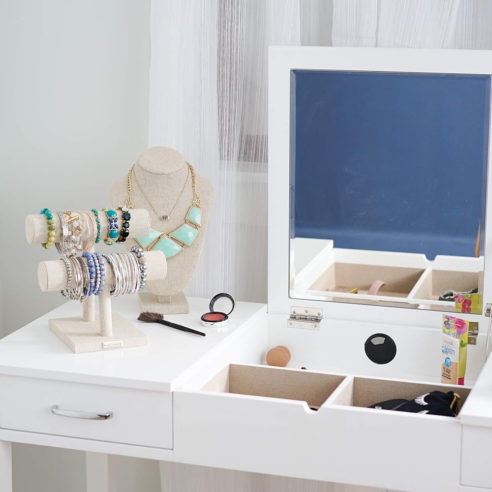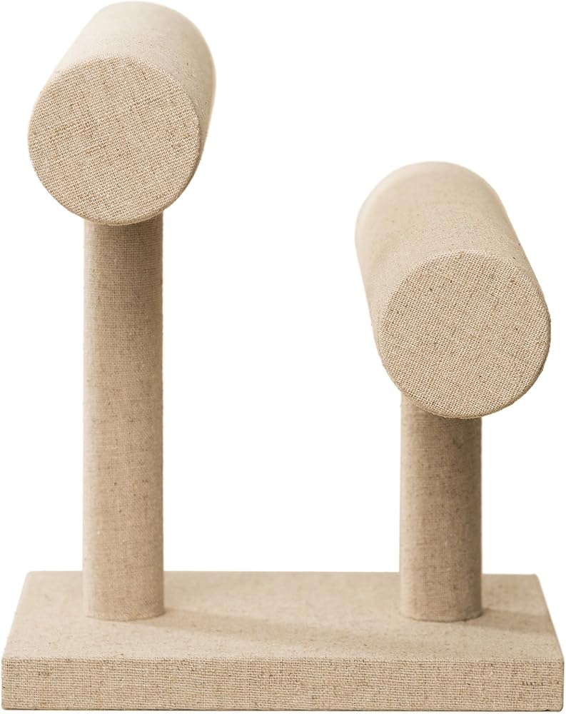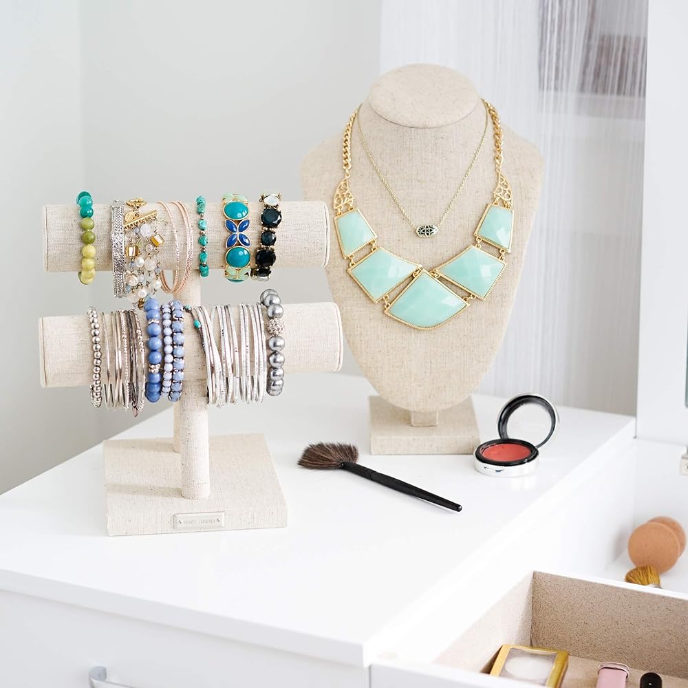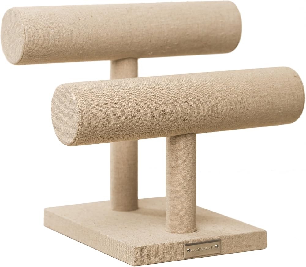 قضيبان مغطيان بالكتان يمثلان عرضًا أنيقًا للساعات والأساور والأساور الحلقية وغير ذلك الكثير
