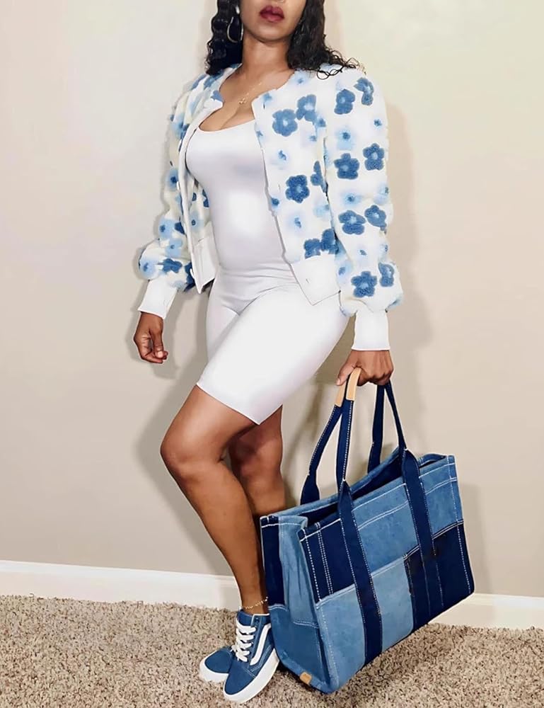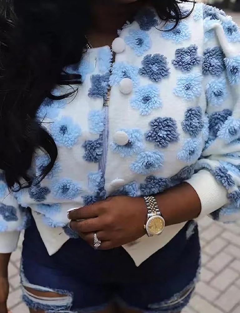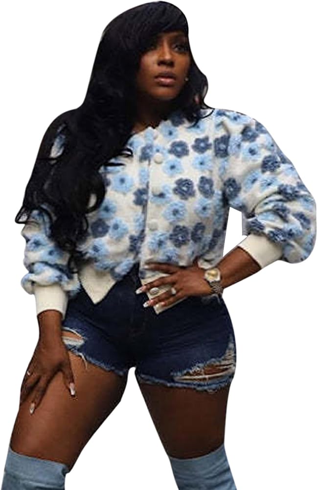 • ♥ طباعة الأزهار: سترات قصيرة من الفرو للسيدات، أزهار كروشيه تكمل الألوان النابضة بالحياة، وستكون السترة ذات الأزرار السفلية المصممة جيدًا هي أبرز ما يميز جسمك بالكامل. الأزرار، الأكمام الفانوس، الأصفاد والحاشية مضلعة للإغلاق.