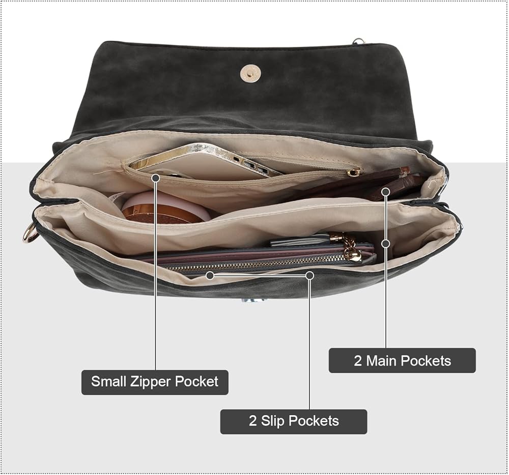 • جيوب متعددة: تحتوي محفظة الكتف على جيب أمامي واحد، وجيبين داخليين، وجيب داخلي صغير، وفتحتين للبطاقات. تأتي مع محفظة صغيرة للعملات المعدنية، سعة كافية لحمل المحافظ الصغيرة والهواتف المحمولة والمفاتيح والنظارات الشمسية وغيرها من الضروريات اليومية الصغيرة منظمة بشكل جيد.