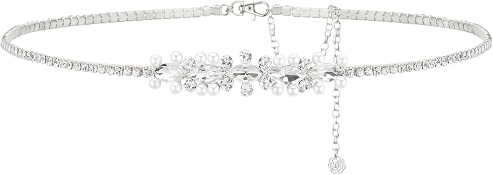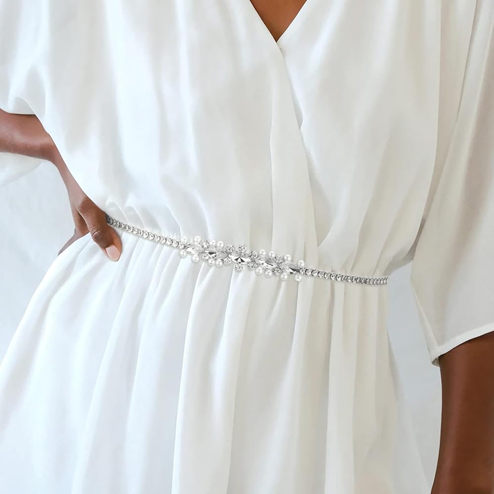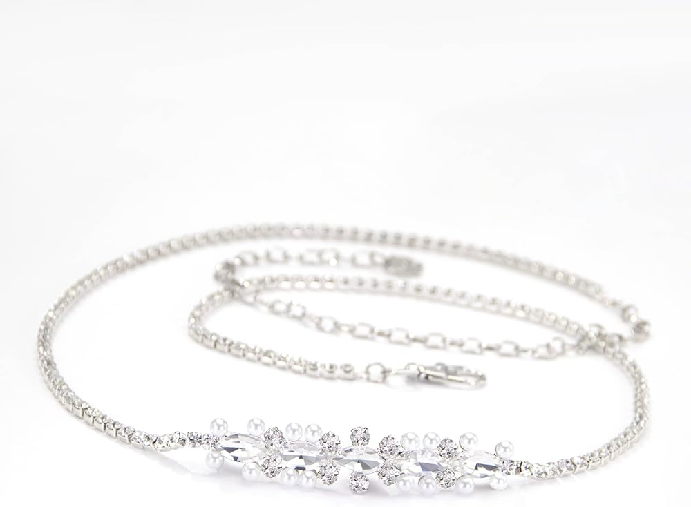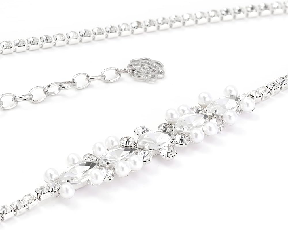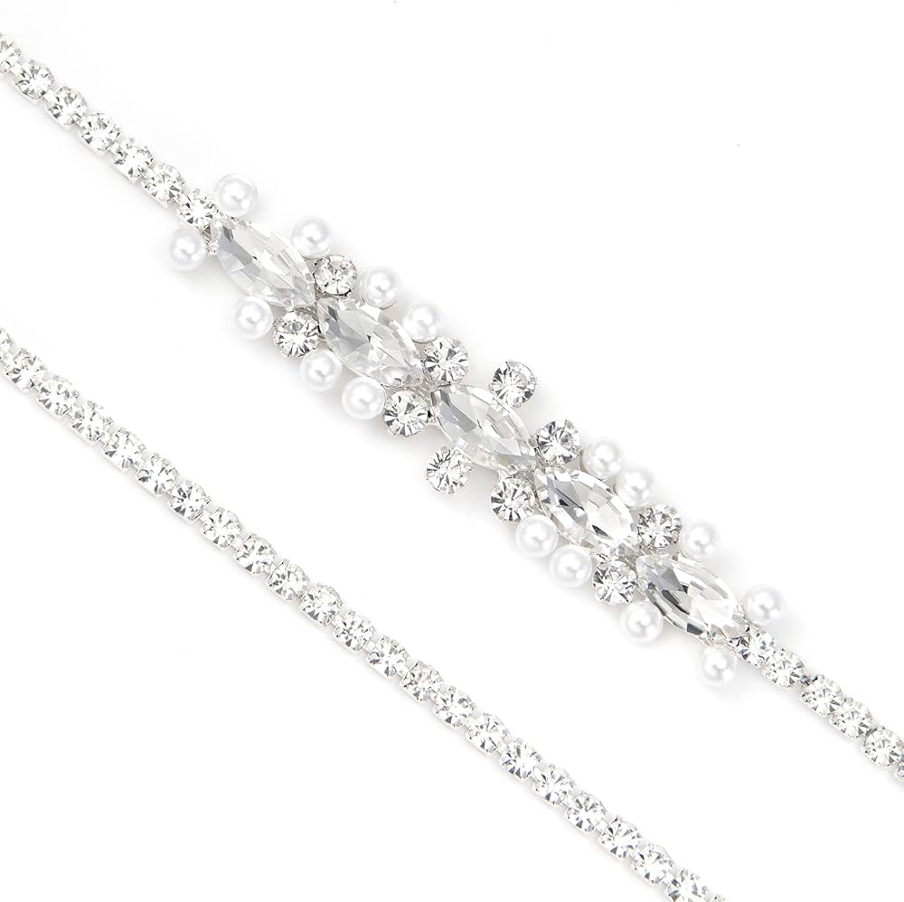 حزام الزفاف YooAi Sweetest rhinestone and Pearl هو اللمسة المثالية ليومك الخاص! تمتع بمظهر رائع للغاية مع هذا الحزام الذي يتميز بأحجار الراين المتلألئة والشفافة مع اللآلئ اللامعة التي تشكل تصميمًا أنيقًا.