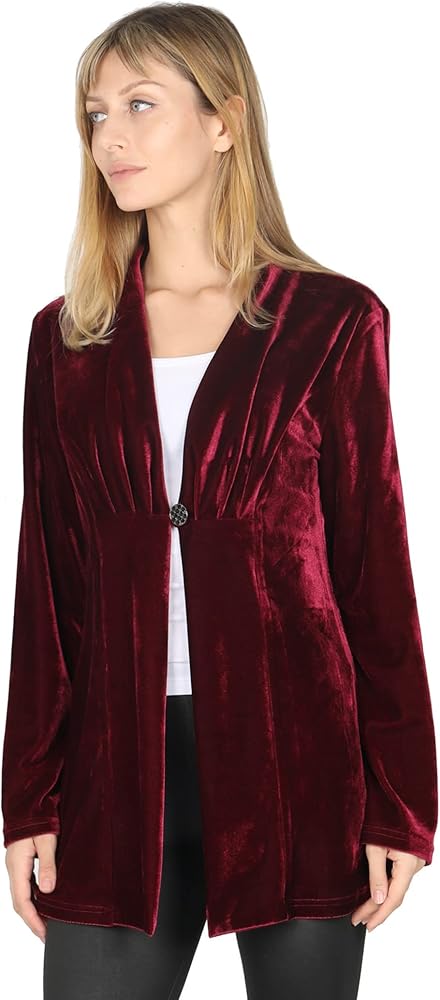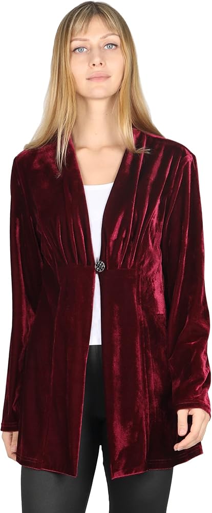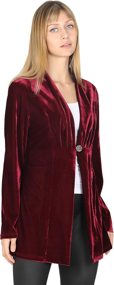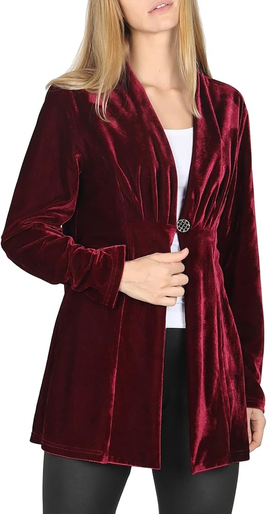 • تتميز هذه السترات القطيفة بأكمام طويلة، وقصة فضفاضة، وياقة متدلية، ودبابيس في الأمام. فهي خفيفة الوزن مع التصميم غير الرسمي.