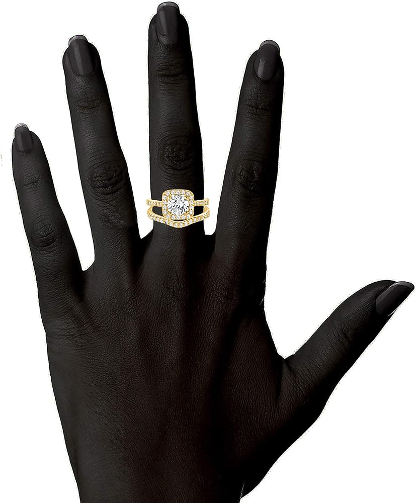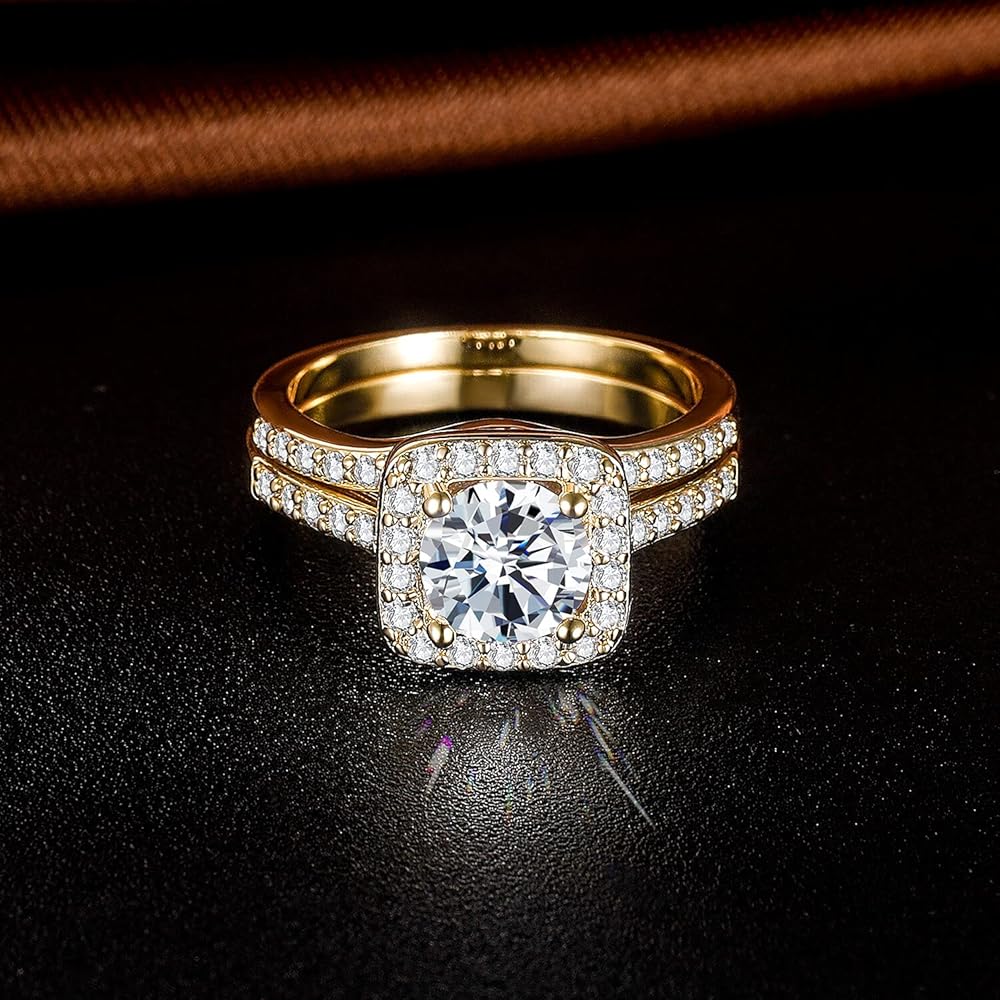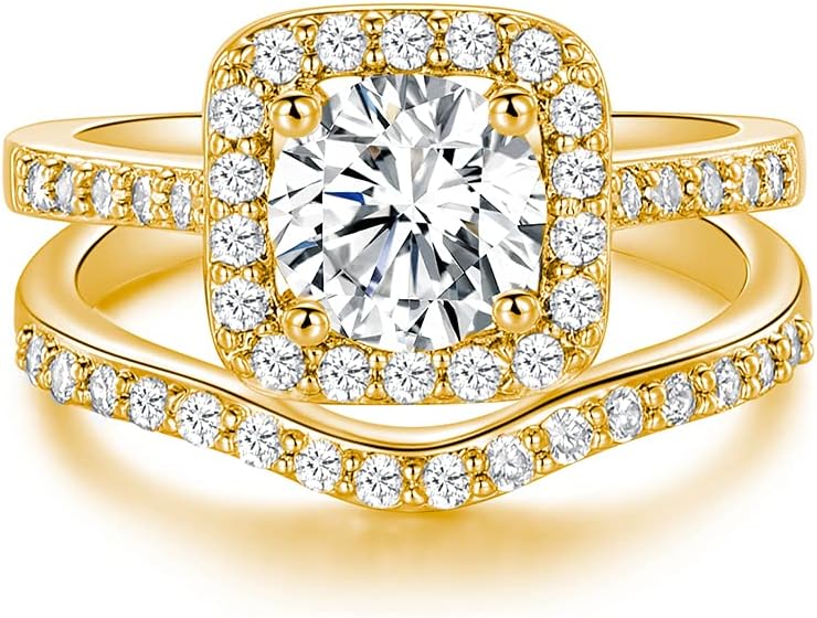 مجموعات خواتم الزفاف مطلية بالذهب عيار 18 قيراط للحصول على لمسة نهائية دائمة ولضمان أنها لا تسبب الحساسية. خواتم الخلود الماسية المحاكاة تمثل الهدية المثالية!