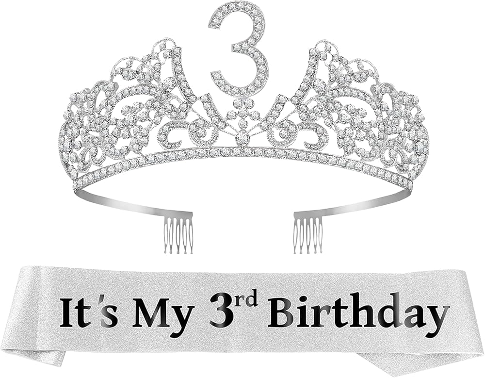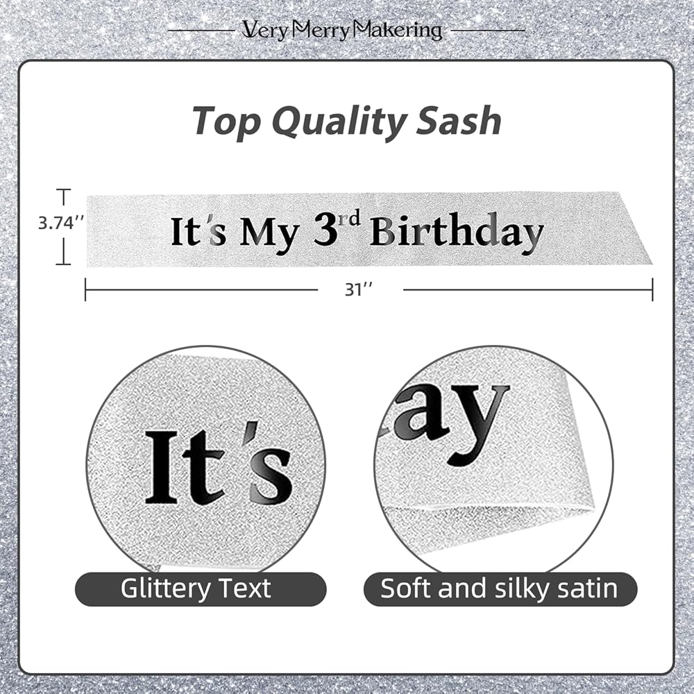 لوازم حفلات عيد الميلاد الثالث الشاملة - تشتمل مجموعتنا على تاج ذهبي ووشاح ذهبي وفضي بتصميم "It's my 3rd Birthday"، مما يجعلها الإضافة المثالية لأي حفلة عيد ميلاد ثالث. إنها طريقة رائعة لإضافة لمسة من الأناقة والأناقة إلى يوم طفلتك الصغيرة الخاص.