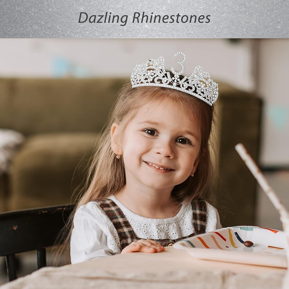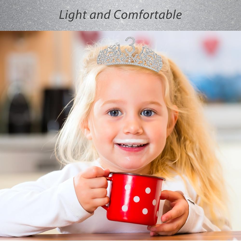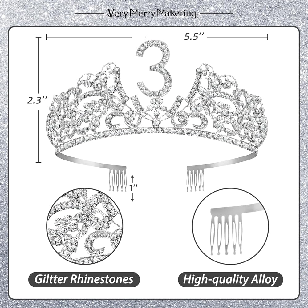 مواد متينة وصديقة للبيئة - تاج ووشاح عيد الميلاد الثالث الخاص بنا مصنوعان من سبيكة معدنية صديقة للبيئة بنسبة 100%، ومزينة بالكريستال وأحجار الراين، وخالية من النيكل. يبلغ مقاس التاج 5.12 بوصة على الجانب الأمامي، في حين أن الرقم 3 هو 1.57 × 1.57 بوصة.