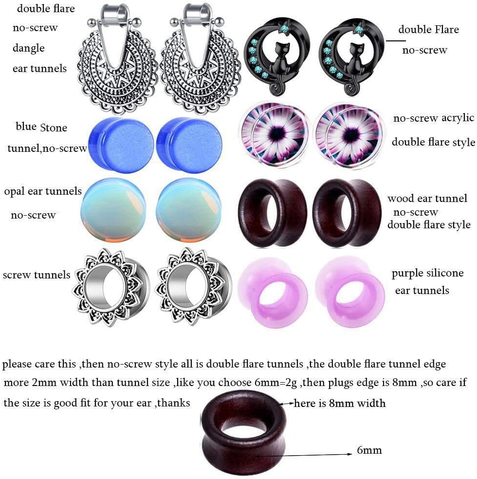 تحتوي كل مجموعة على 8 أزواج من أنفاق الأذن، نفس المقاس بنمط مختلف. حجر طبيعي من السيليكون والفولاذ المقاوم للصدأ جميعها ستكون ممزوجة لمقاسك: 10 مم فهي 00 مقاييس، كل زوج يأتي في حقيبة منفصلة، زوج واحد فقط من اللولب، 7 أزواج أخرى غير مسبوك، جميعها مزدوجة التوهج