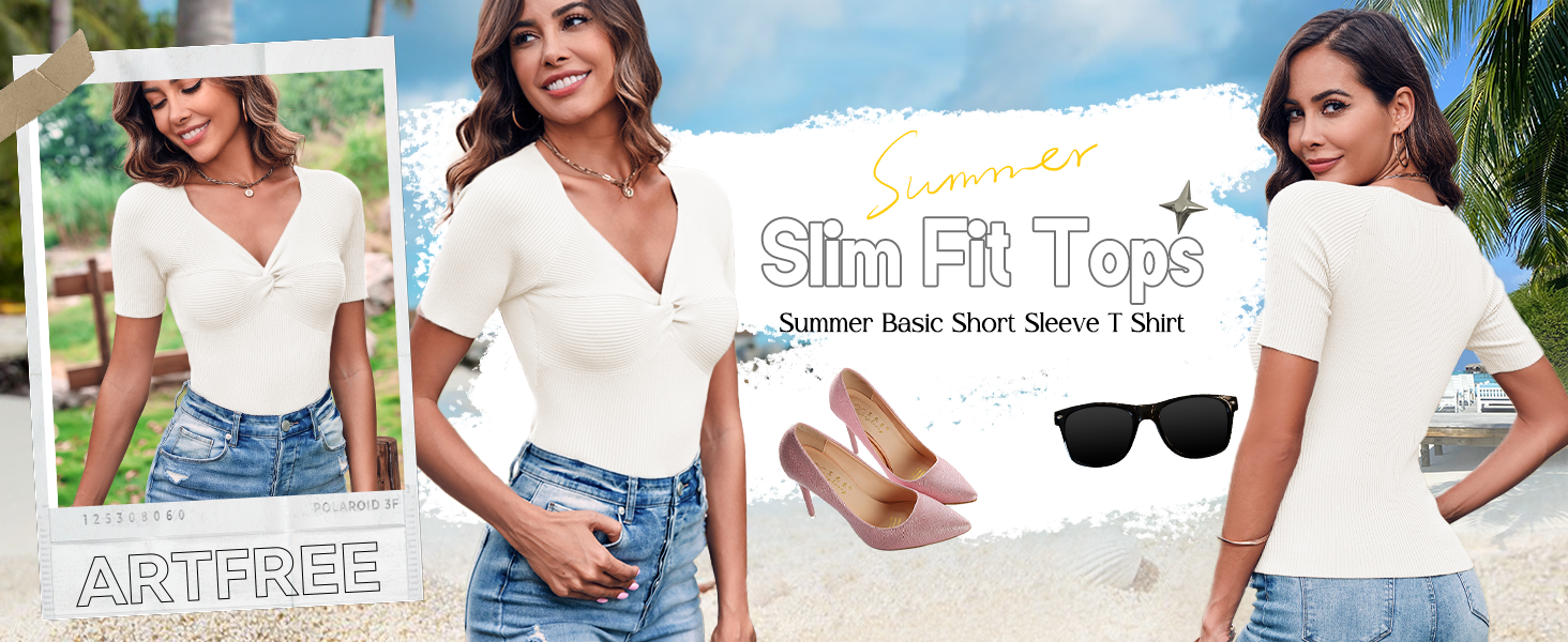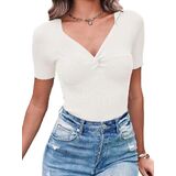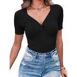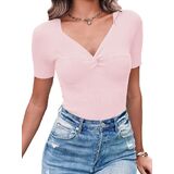 Womens shirts are made of soft, skin-friendly fabric. Stretchy and super comfortable to wear. Breathable, it will keep you relaxed in spring and summer. Essential summer tops make everyday styling easy. The classic combination of twisted knots and V-neckline with the great texture of knit ribbing makes you look stunning. The going out top can be easily paired with jeans, leggings, pants, shorts, skirts, sneakers or heels. Suitable for daily casual, home, outing, dating, party, club, school, office and other formal occasions. Perfect gift for mother, wife, daughter, girlfriend, sister.