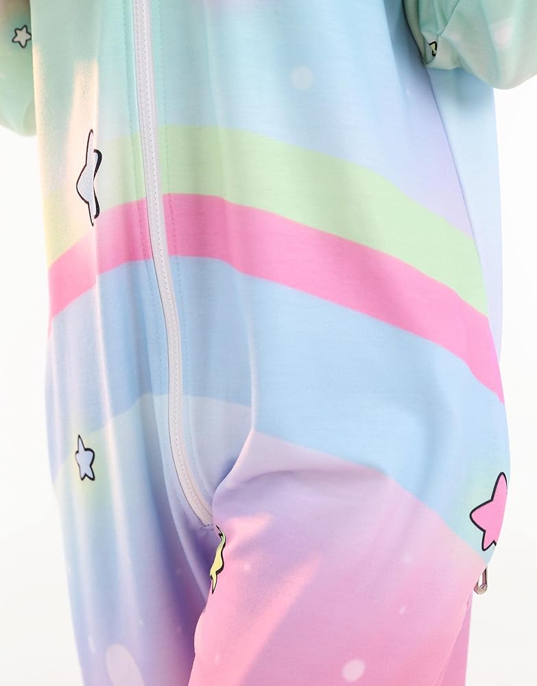 Easy to Put On & Take Off -- There is a zipper on the front middle of the onesie pajamas and the back waist, which makes it easy to put on and take off.