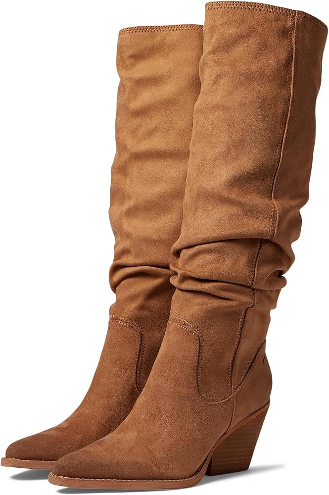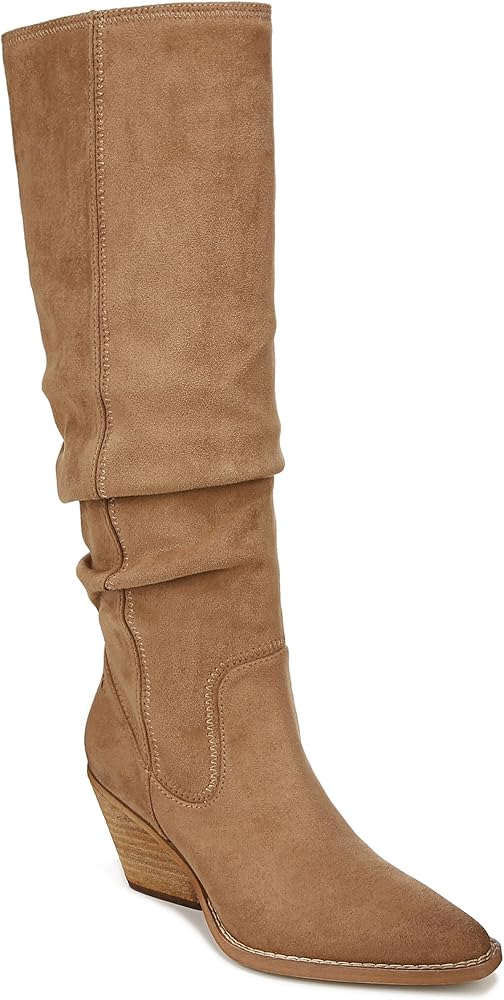 Scrunchy and spirited. Western-inspired tall boots for women designed for every adventure. Synthetic leather or eco-conscious low chemical microfiber fabric upper. Eco-conscious low chemical fabric and synthetic lining. Western stitch detailing. Side zip closure. Pointed toe. Extra arch and heel cushioning for comfort with every step. 2 1/2 inch slanted block heel. Synthetic outsole.
