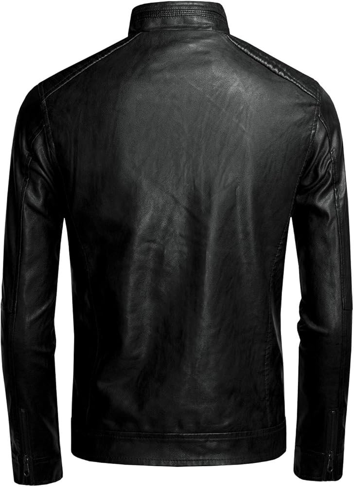 JUREX جاكيت جلدي بياقة واقفة للرجال موتو أسود