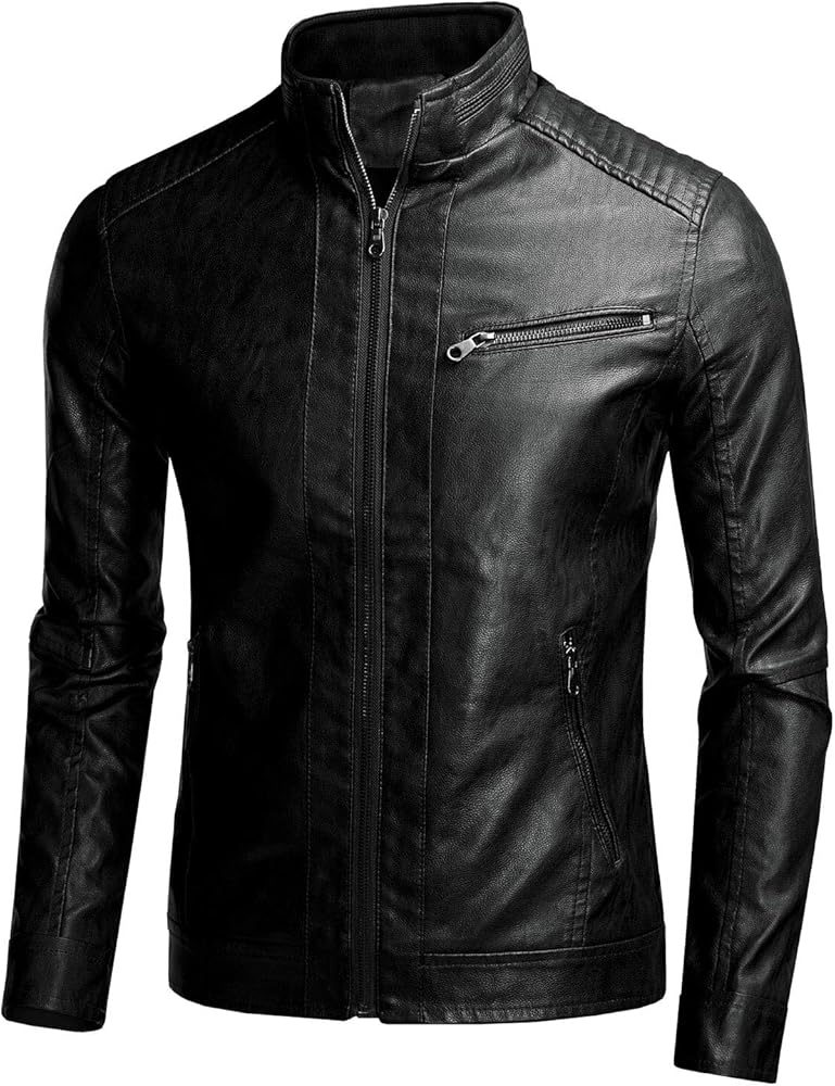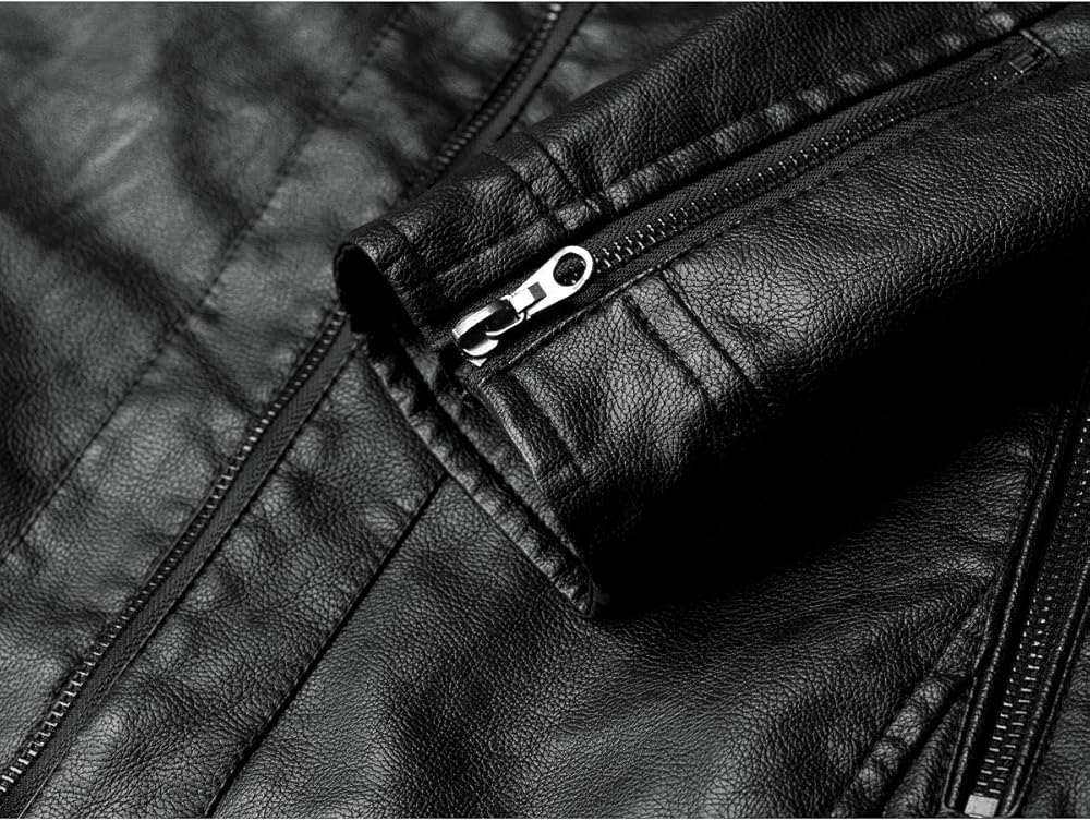 - سترات جلدية للرجال بسحاب أمامي كامل وتتميز بياقة موتو