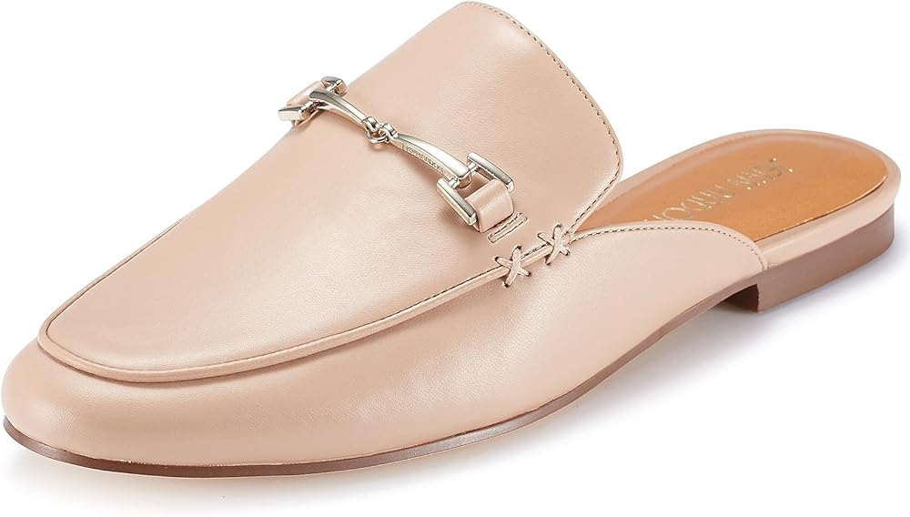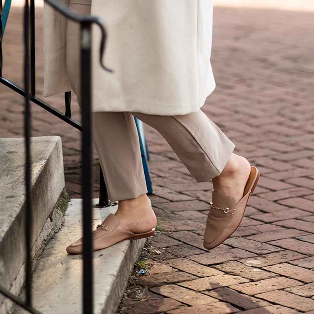 JENN ARDOR Mules للنساء سهل الارتداء بدون كعب بدون كعب، شباشب مغلقة بمقدمة مدببة وسلسلة معدنية مسطحة بكعب منخفض، أحذية مشي كاجوال