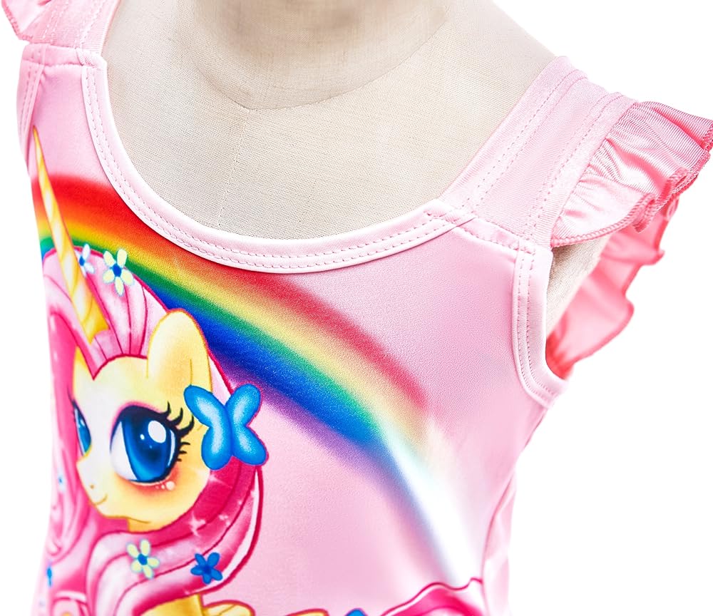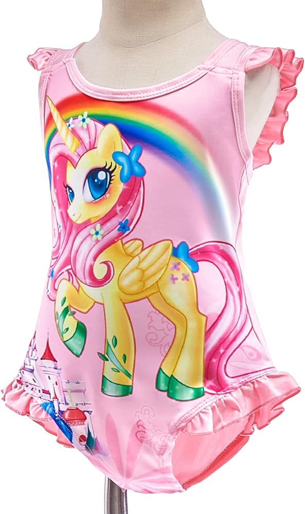 • Stunning and cute unicorn girls' one-piece swimwear. Perfect one piece bathing suit or swimsuit for toddler kids and children. Different design and cutting, with colorful digital printed pattern like little pony, rainbow, castle etc.