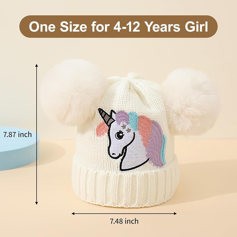 The unicorn beanie decorated with pompom, every girls will love it,Great gifts for girls who love Unicorns, making her the envy of her little friends.