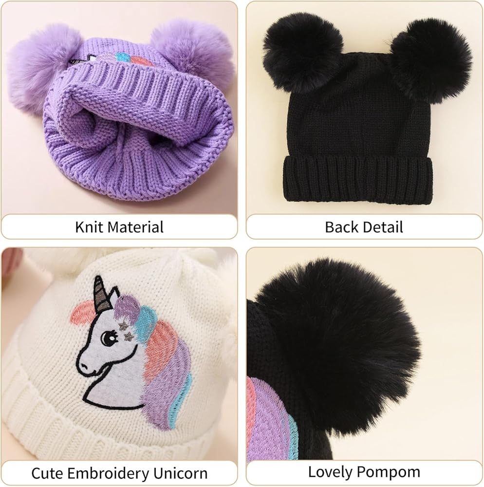 • 【Embroidered Unicorn & Pompom Design】:What kid wouldn't love this fun unicorn hat? The cute, soft, warm ski cap features unicorn pompom elements for style, looking magical and fashion,The Embroidered design of the hat makes your little one look cute while providing warmth in the cold winter.