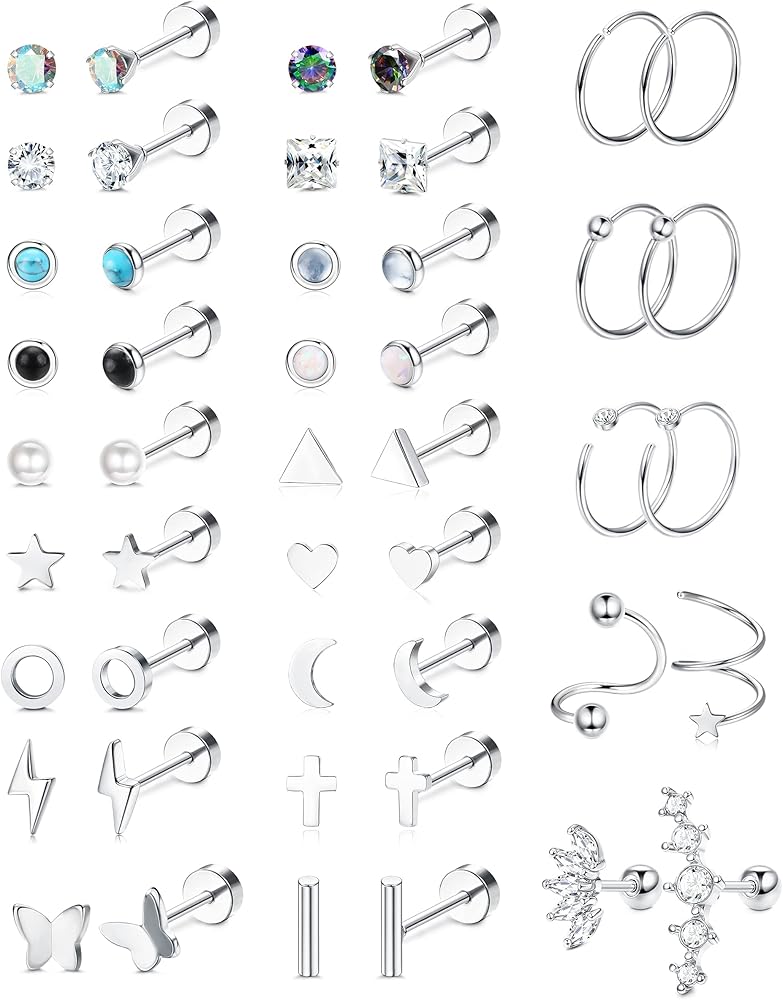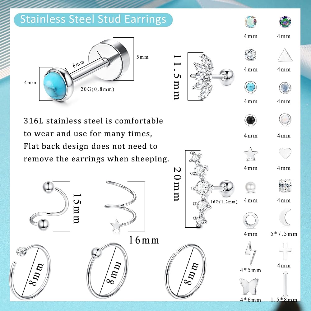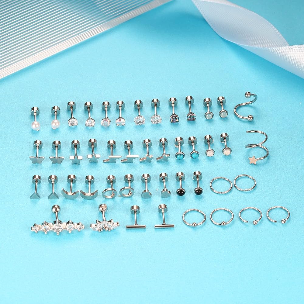 • 【مجموعات أقراط الغضروف لثقب متعدد】مجموعة أقراط صغيرة من الفولاذ المقاوم للصدأ لا تسبب الحساسية مناسبة للنساء والرجال من جميع الأعمار، كمية وفيرة وأنماط مختلفة، تصميم الأقراط المسطحة الخلفية يسمح لك بالنوم دون إزالة الأقراط. إنها هدية خاصة لصديقك أو أحد أفراد عائلتك في الهالوين، والكريسماس، والذكرى السنوية، وعيد الحب، وأعياد الميلاد، ورأس السنة الجديدة، والحفلات، وما إلى ذلك.