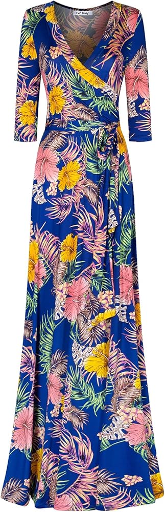 • FEATURES: This maxi dress features elegant quarter sleeve, deep V neck line, floor length, a waist tie creating an elegant and flattering wrap around the body, also great for maternity. Available in multiple eye-catching patterns including palm tree, vivid flowers, and Geo patterns.