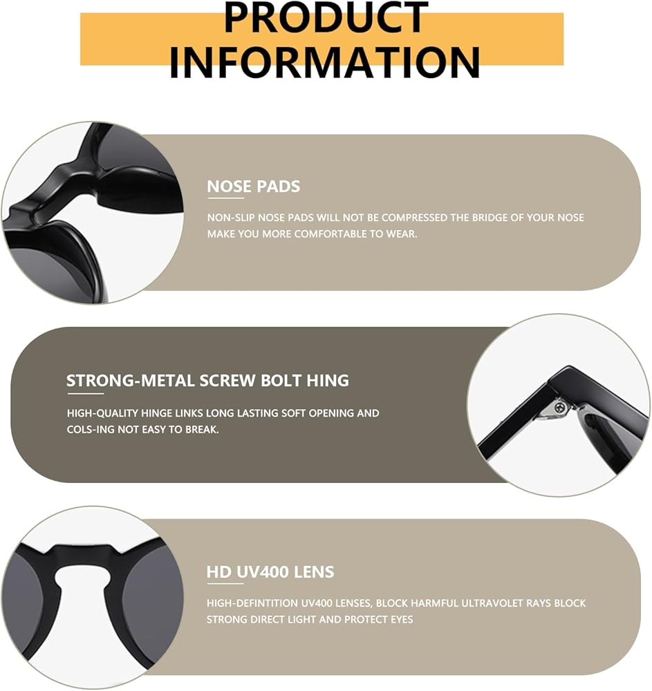 ملاءمة مريحة: يوفر الإطار خفيف الوزن ووسادات الأنف القابلة للتعديل ملاءمة مريحة، مما يسمح لك بارتداء هذه النظارات الشمسية لفترات طويلة دون أي إزعاج.