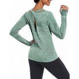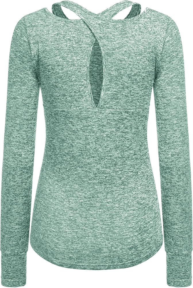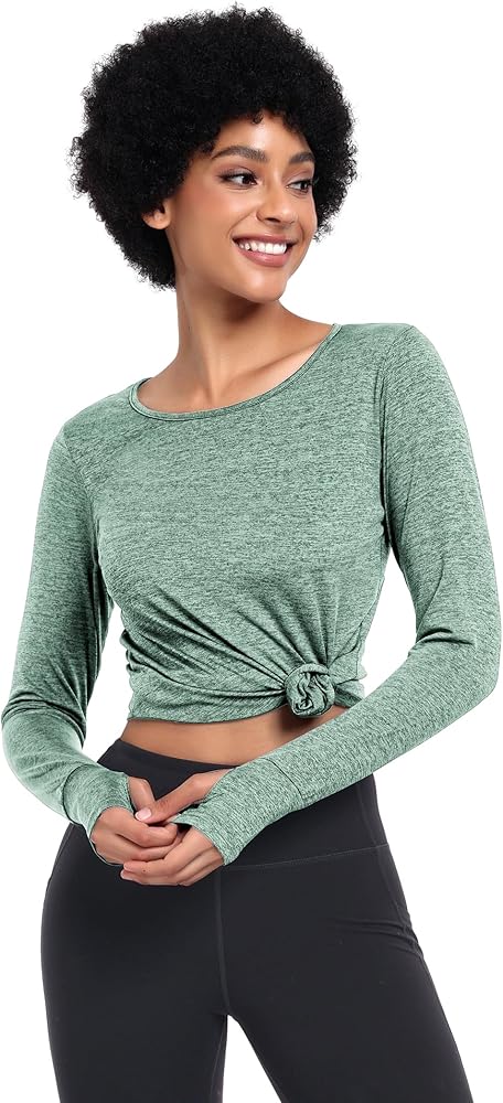 خامة سريعة الجفاف: بلوزة اليوغا ذات الأكمام الطويلة هذه مصنوعة من 90% بوليستر و10% سباندكس، قماش ماص للرطوبة، سريع الجفاف وبارد، مثالي للرياضة والجري والمشي لمسافات طويلة.