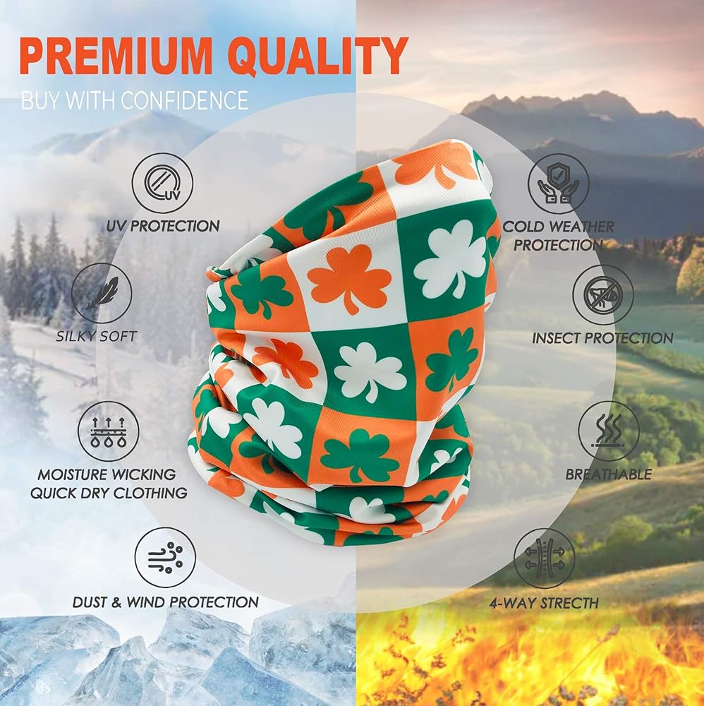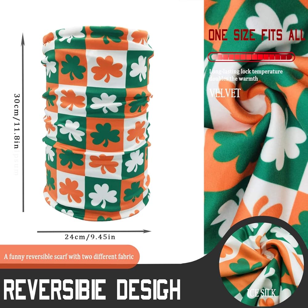 قناع وجه للرقبة قابل للعكس، قناع وجه باندانا للرقبة، غطاء وجه مريح، قناع تزلج وشاح درع للرجال والنساء، قناع علم ايرلندا شامروك مرح, غطاء رقبة بتصميم علم النفل الأيرلندي, مقاس واحد