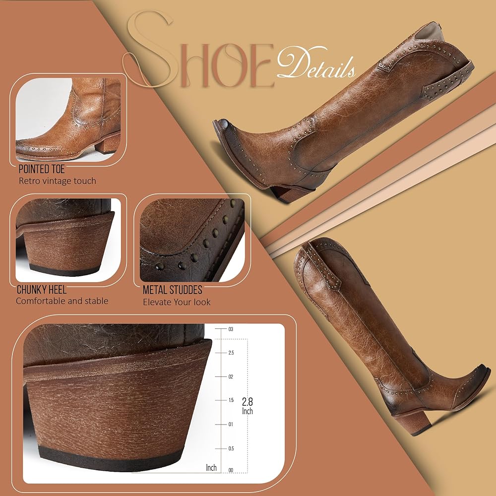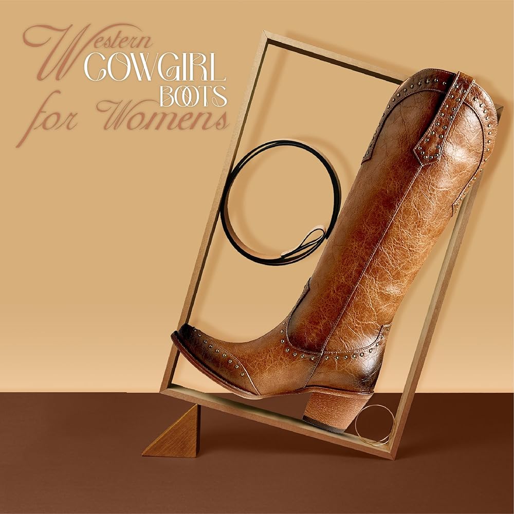*AOSPHIRAYLIAN* أحذية رعاة البقر للنساء يبلغ ارتفاع الكعب حوالي 2.8 سم