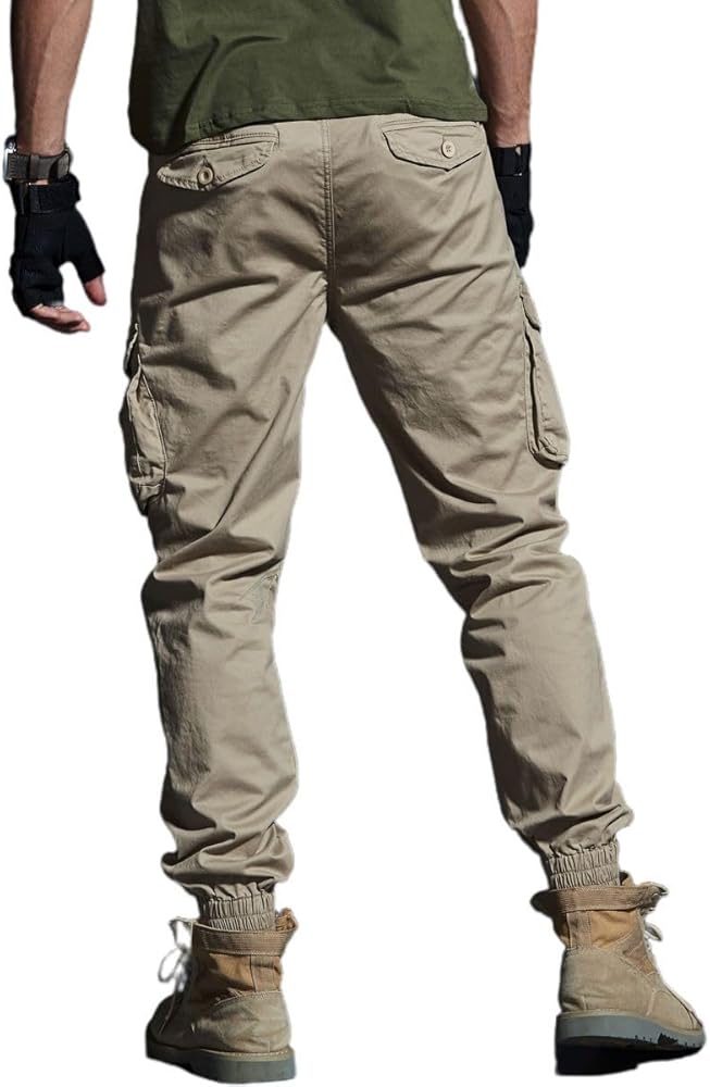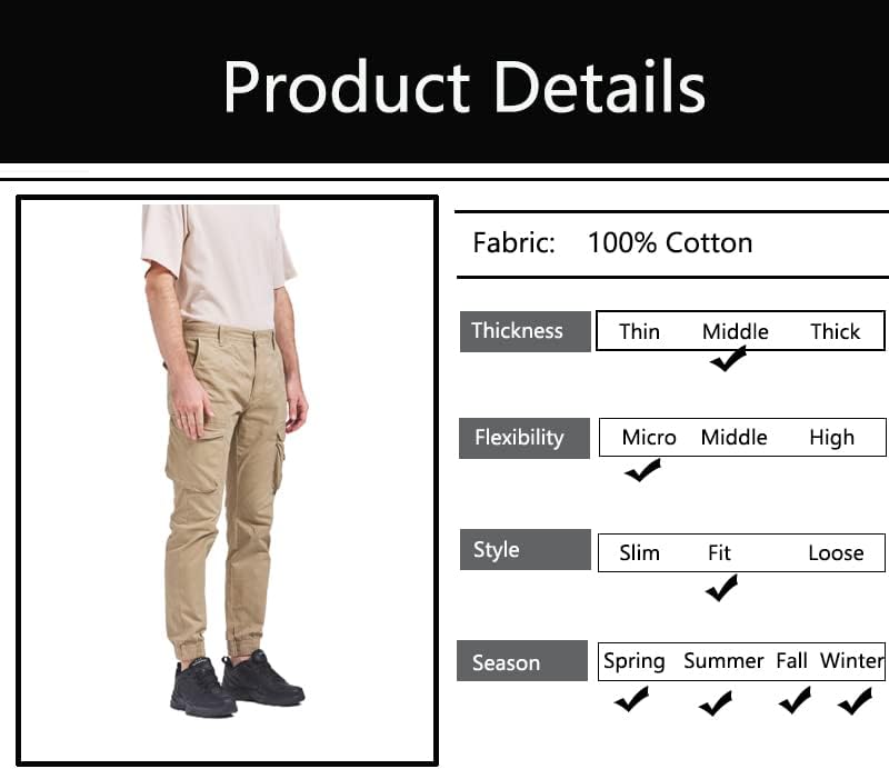 القماش: ساق مرنة مدببة للرجال، سراويل كارجو للعمل مصنوعة من نسيج منسوج من القطن بنسبة 100%، والذي يتميز بتهوية جيدة ومريح ونعومة.