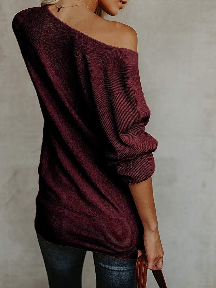 نسيج محبوك وأجنحة الخفافيش كم مثير بدون أكتاف بلوفر علوي، الألوان: أسود، رمادي، كحلي، أبيض، عنابي، كاكي، مناسب للارتداء مع السراويل القصيرة أو الجينز أو اللباس الداخلي رائع للاستخدام اليومي غير الرسمي والحفلات والعمل والتاريخ وحفلات الكوكتيل والنوادي الليلية العودة للوطن في الخريف والشتاء والربيع