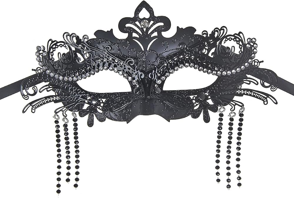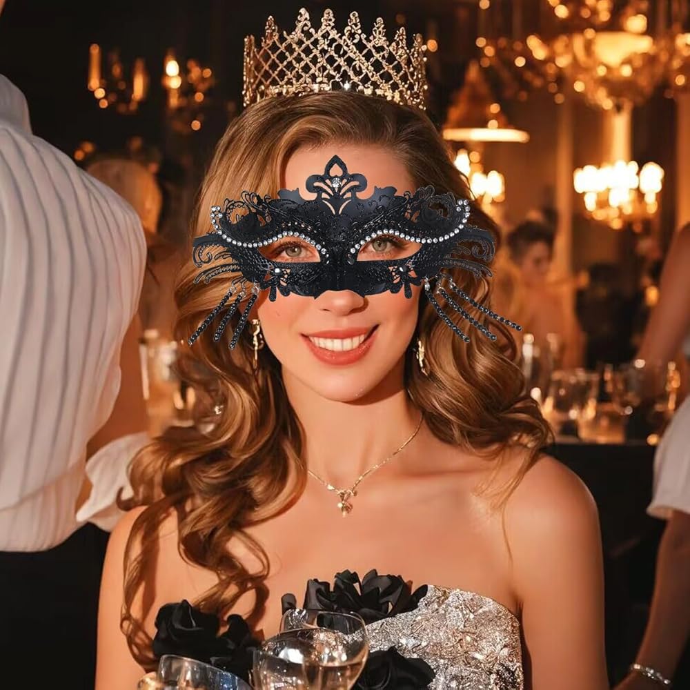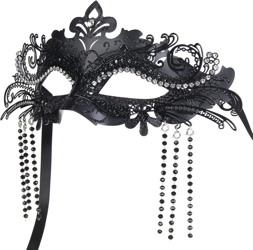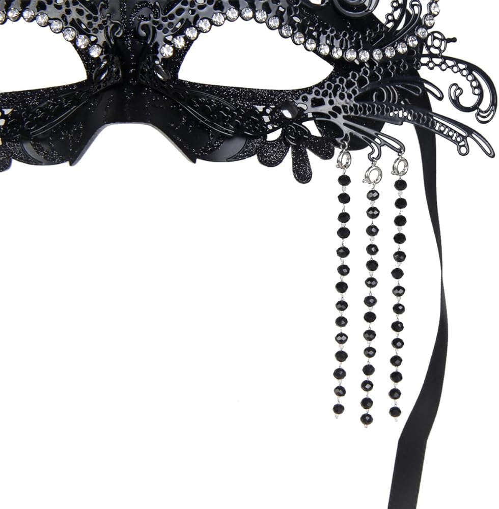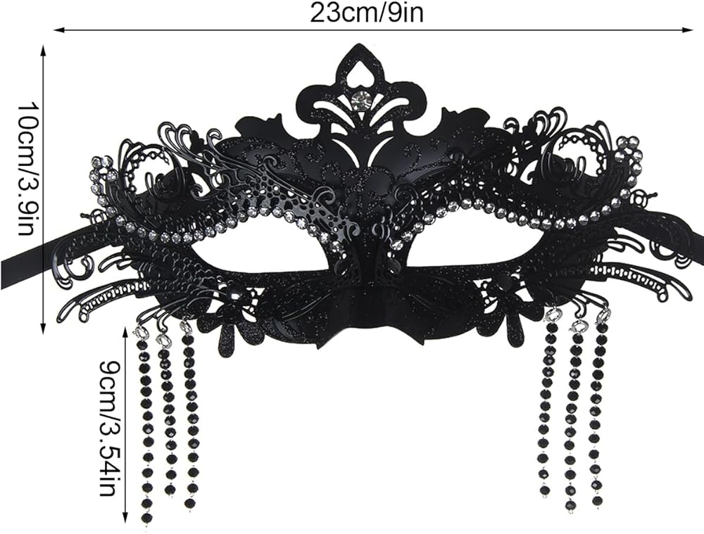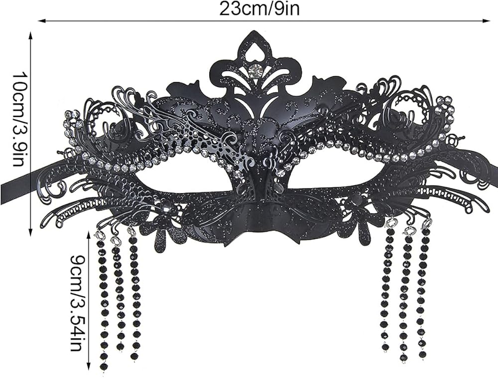 يبدو قناع ماردي جراس النسائي الأنيق والرائع تمامًا رائعًا ومثاليًا لمطابقة ملابسك في الحفلات التنكرية والمهرجانات والحفلات ذات الطابع الكرنفالي والحفلات التنكرية. قناع تنكر أسود للنساء مزين بأحجار الراين يفسر سحر الموضة الجميل الخاص بك، ويظهر شخصيتك الغامضة!