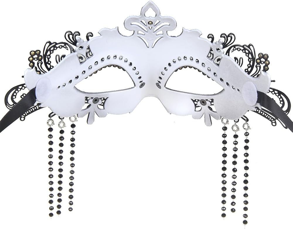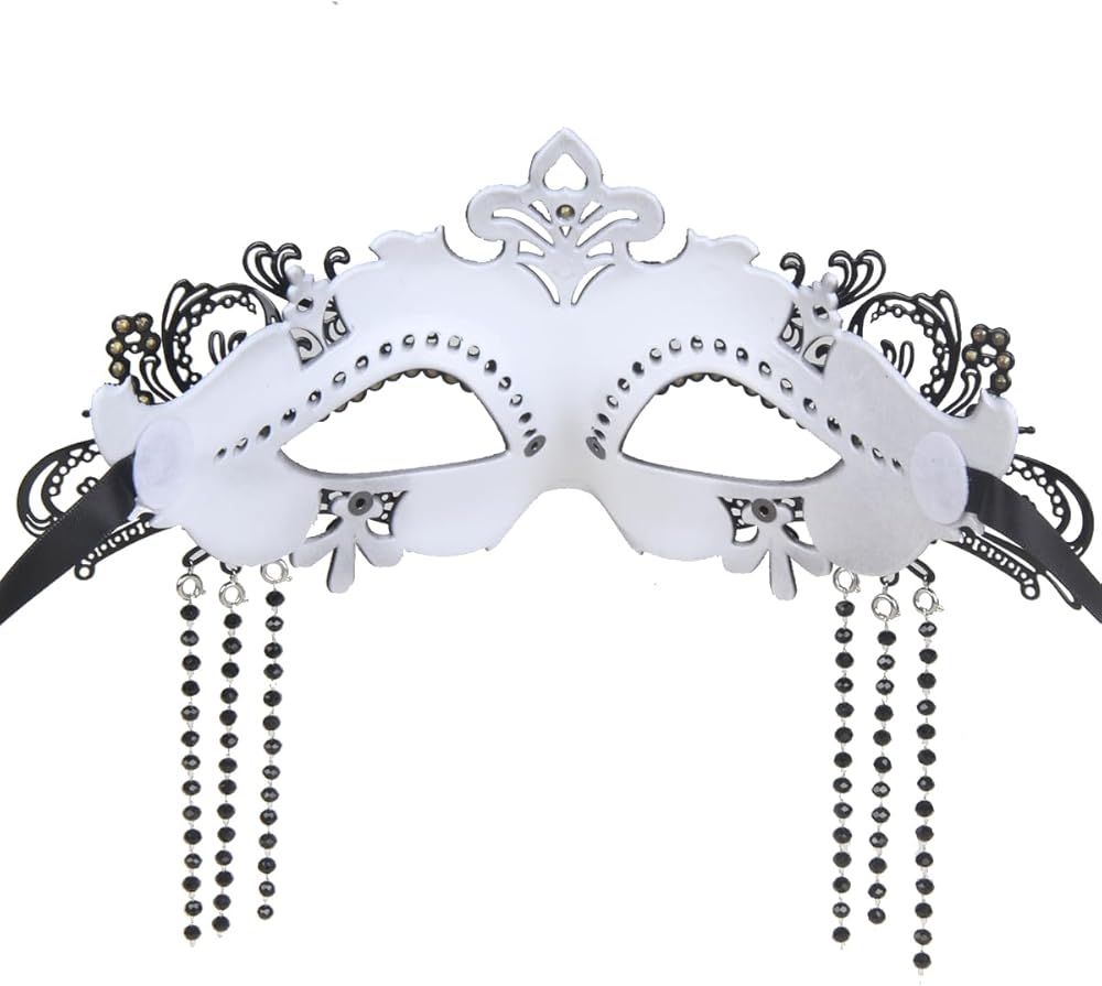 هذا القناع التنكر الأسود الرائع مملوء بعناية بخرزات لامعة تتألق بشكل مشرق وذوق رفيع. إنه مجرد انبهار أنيق مناسب. تم صنع هذا القناع بعناية فائقة بالتفاصيل في عملية تشع في النتيجة النهائية. سيزيد قناع القاعة الأبيض هذا من غموضك ويطلق العنان لسحرك.