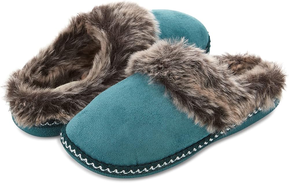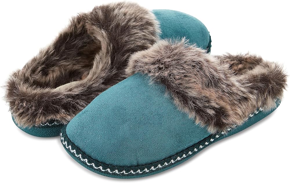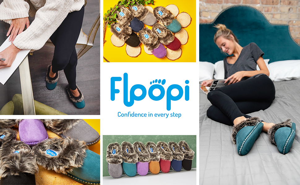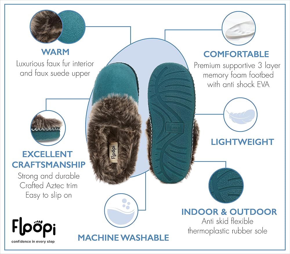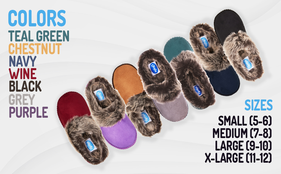 BEAUTIFUL COLORS TO CHOOSE FROM: What's your favorite color? Floopi faux fur clog slippers come in 6 different colors, so we're sure that you'll find the one you love. The Aztec slippers come in black, wine, teal green, chestnut, navy, purple and grey. They all have the same brown faux fur and that's why the two-tone slippers are so fashionable and stylish.