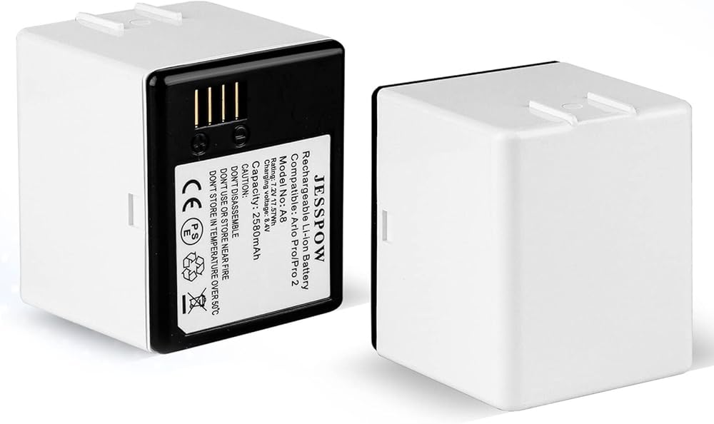 Material: rechargeble Li-ion; Capacity: 2580mAh; High capacity and quality cells make your Arlo Pro, Arlo Pro 2 work longer for an overall life expectancy of over a 500 charge cycles.