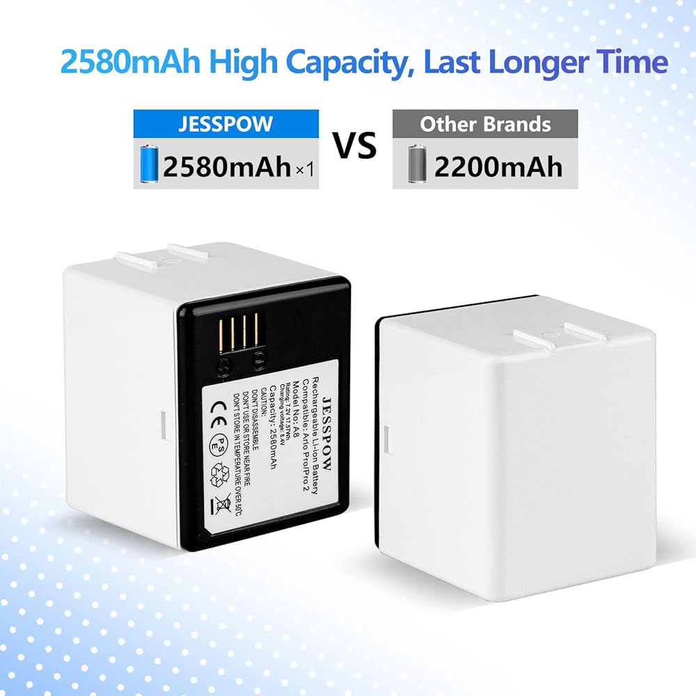بطارية بديلة JESSPOW لـ Arlo Pro، Arlo Pro 2 (VMA4400)، عبوتان من بطاريات ليثيوم أيون قابلة لإعادة الشحن بقدرة 2580 مللي أمبير في الساعة لـ Arlo Pro/Pro 2 [فقط لكاميرا Arlo Pro/Pro 2، غير متوافقة مع Ultra/Pro 3]