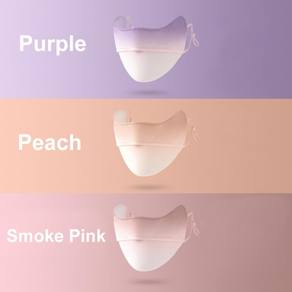 VKSG درع الوجه للأشعة فوق البنفسجية، قناع الوجه للحماية من الشمس، قابل للغسل، قابل لإعادة الاستخدام، أغطية وجه رياضية ناعمة قابلة للتنفس من الحرير الجليدي للنساء (متدرج وردي دخاني)