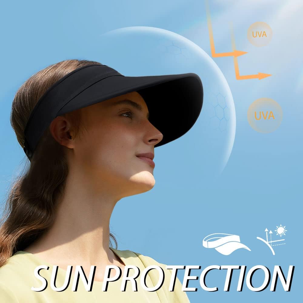 WTACTFUL كبيرة حافة الشمس قبعة للوقاية من الأشعة فوق البنفسجية للنساء Packable ذيل حصان قبعات الشاطئ للمشي لمسافات طويلة السفر في الهواء الطلق الصيف